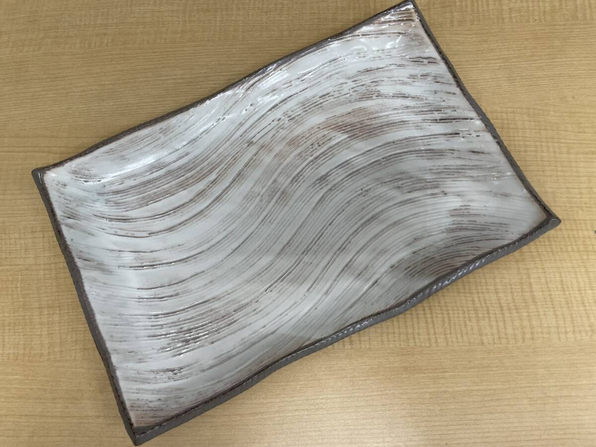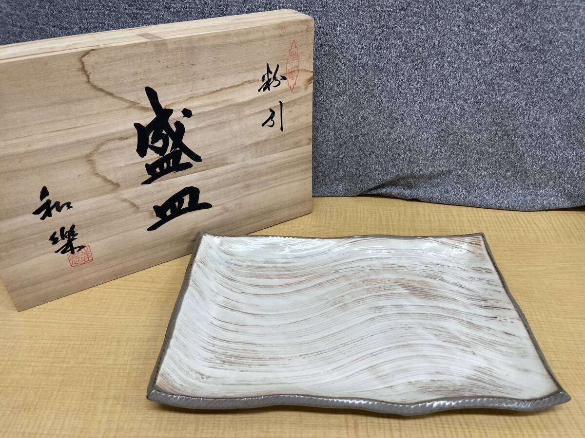 未使用★雅陶 和楽 粉引長角盛皿★各皿/大皿★X25226