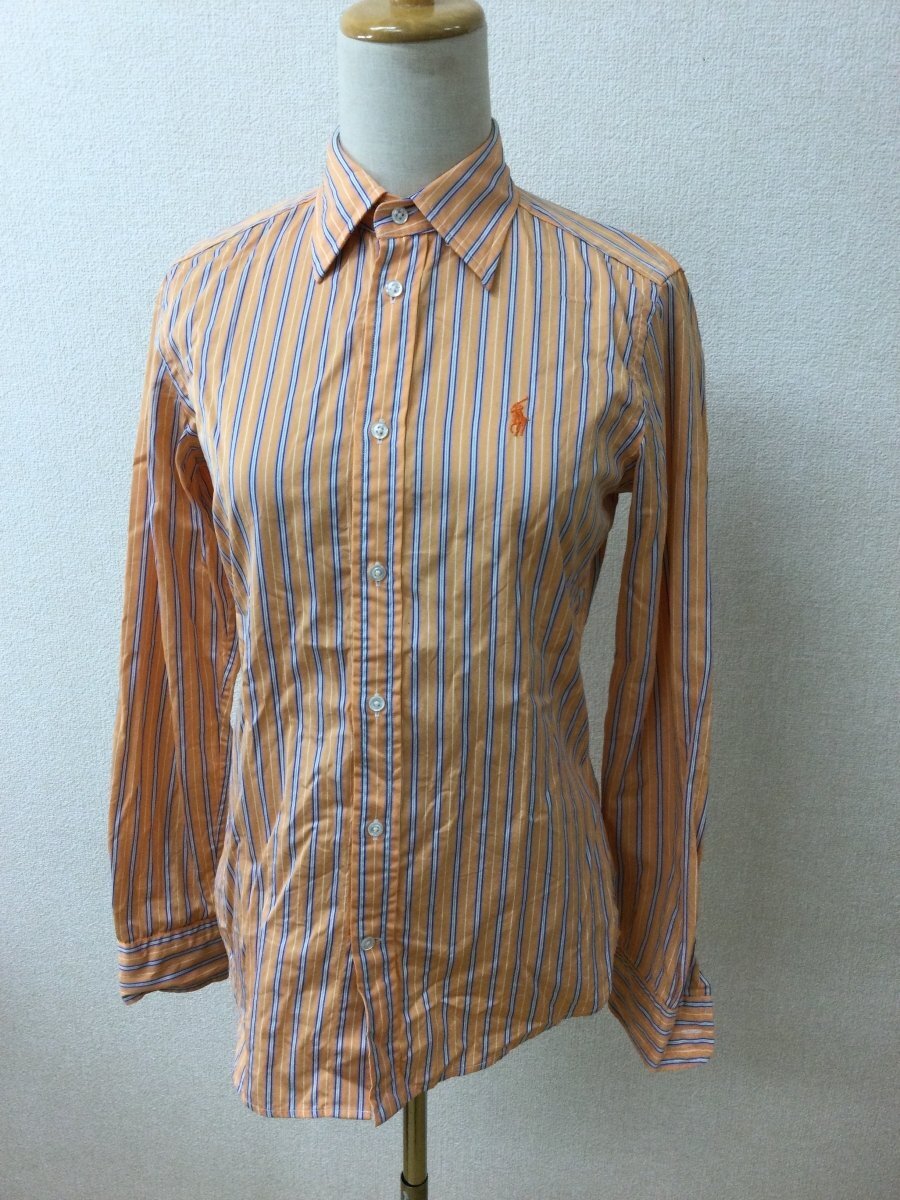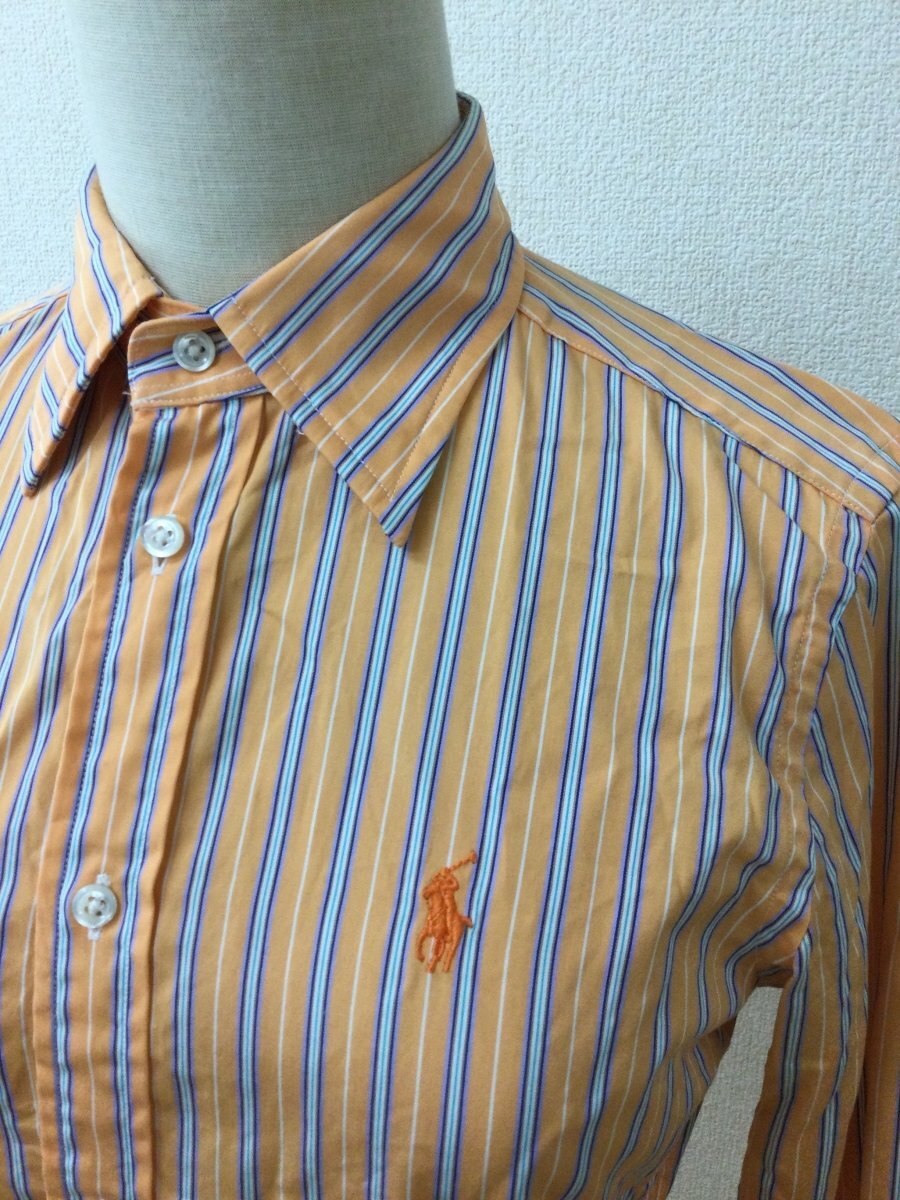 | 管理番号:10^137053 ラルフローレン オレンジストライプシャツ スリムフィット 表示サイズ:4 160/88A 実寸(参考)
