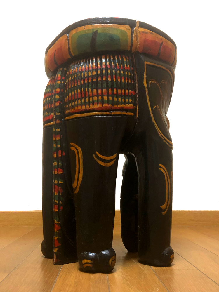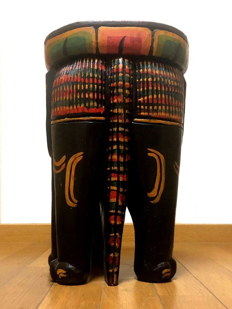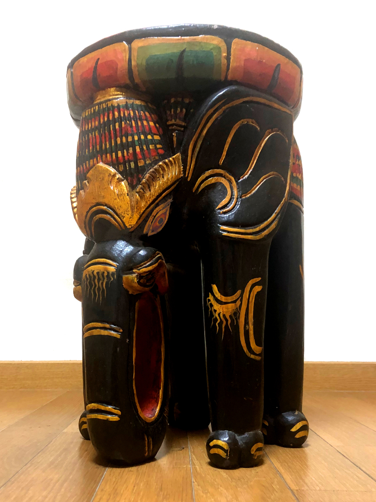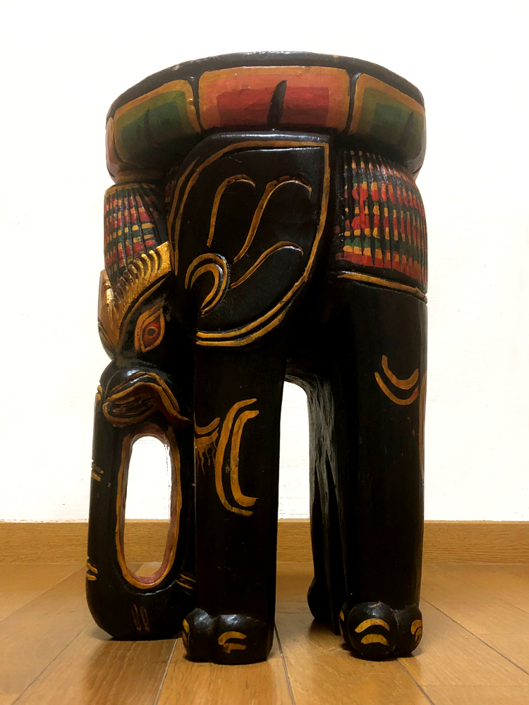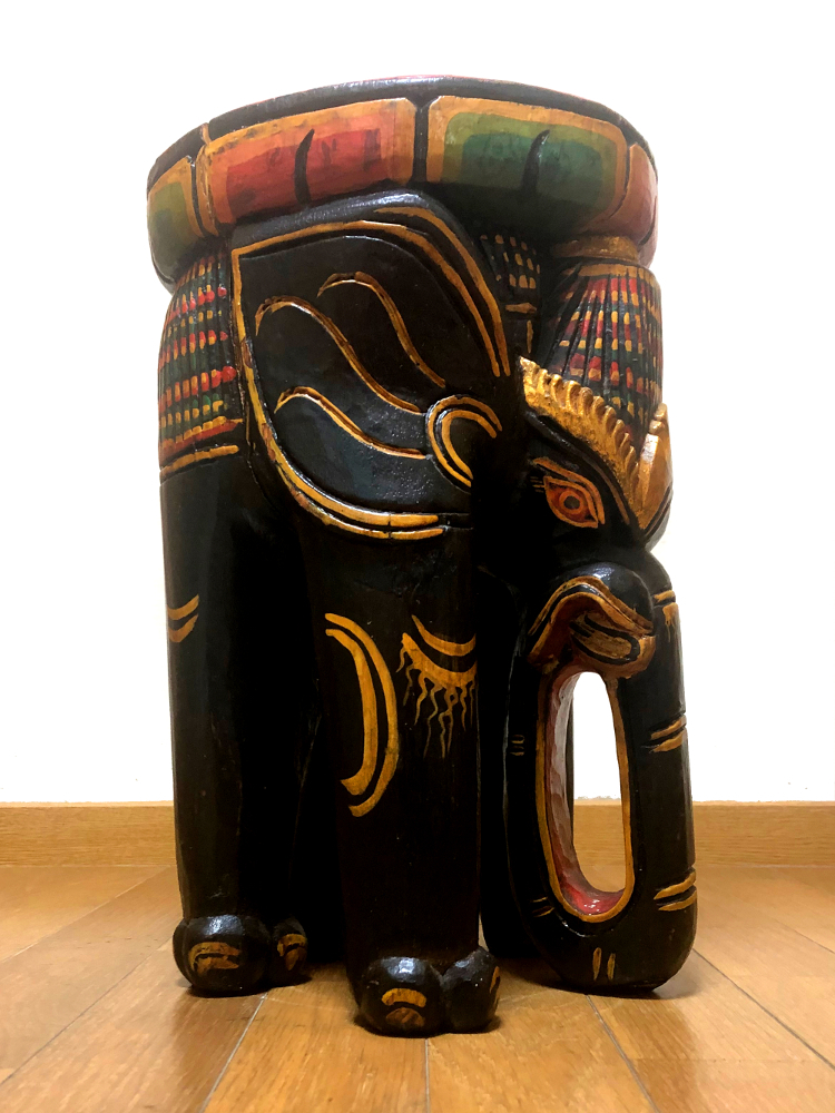 象がモチーフのエスニックなスツール。木製の彫刻品です。