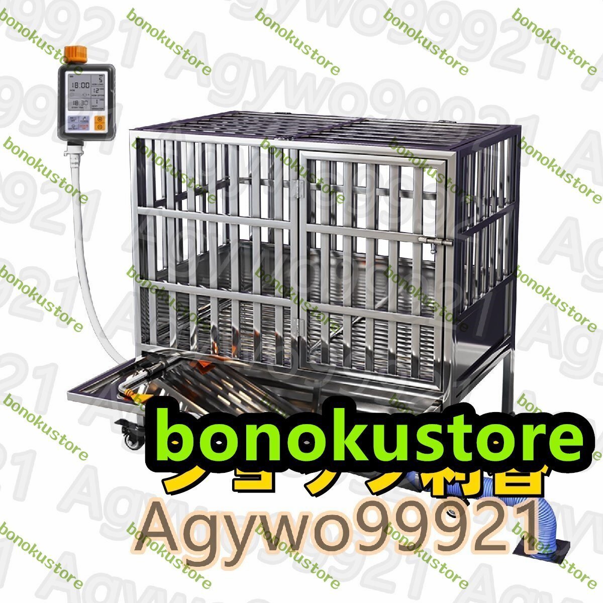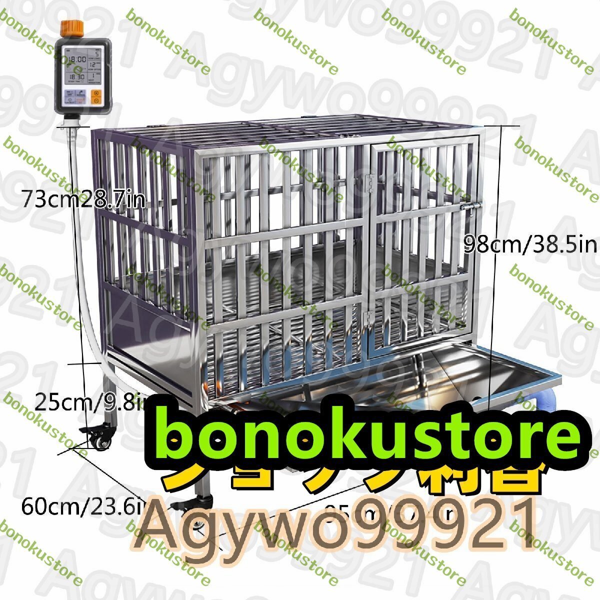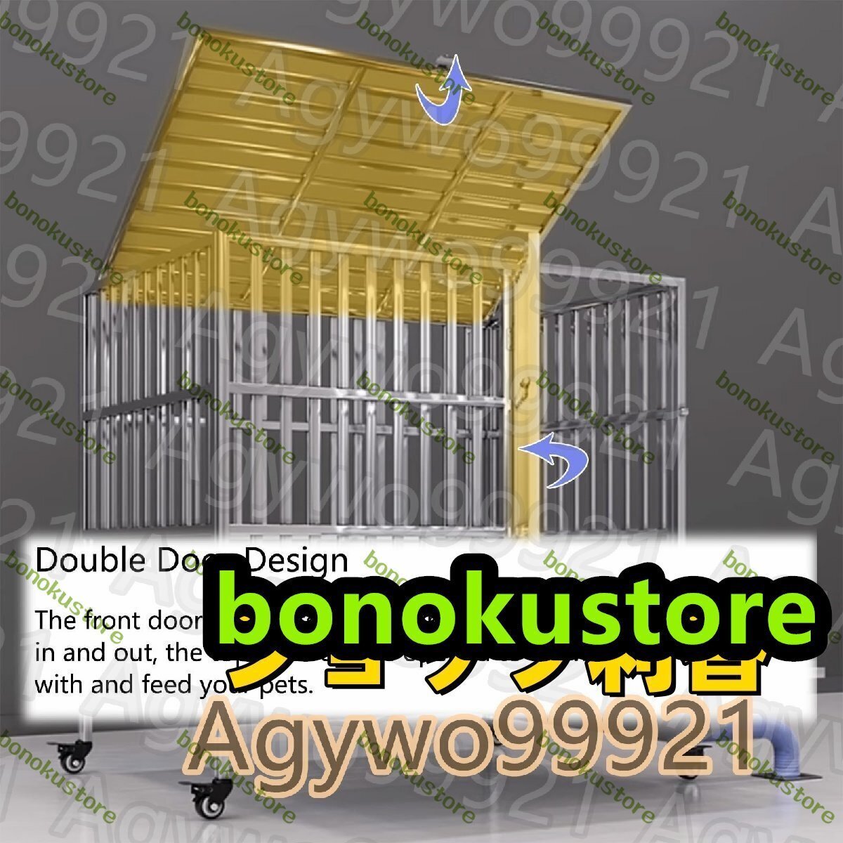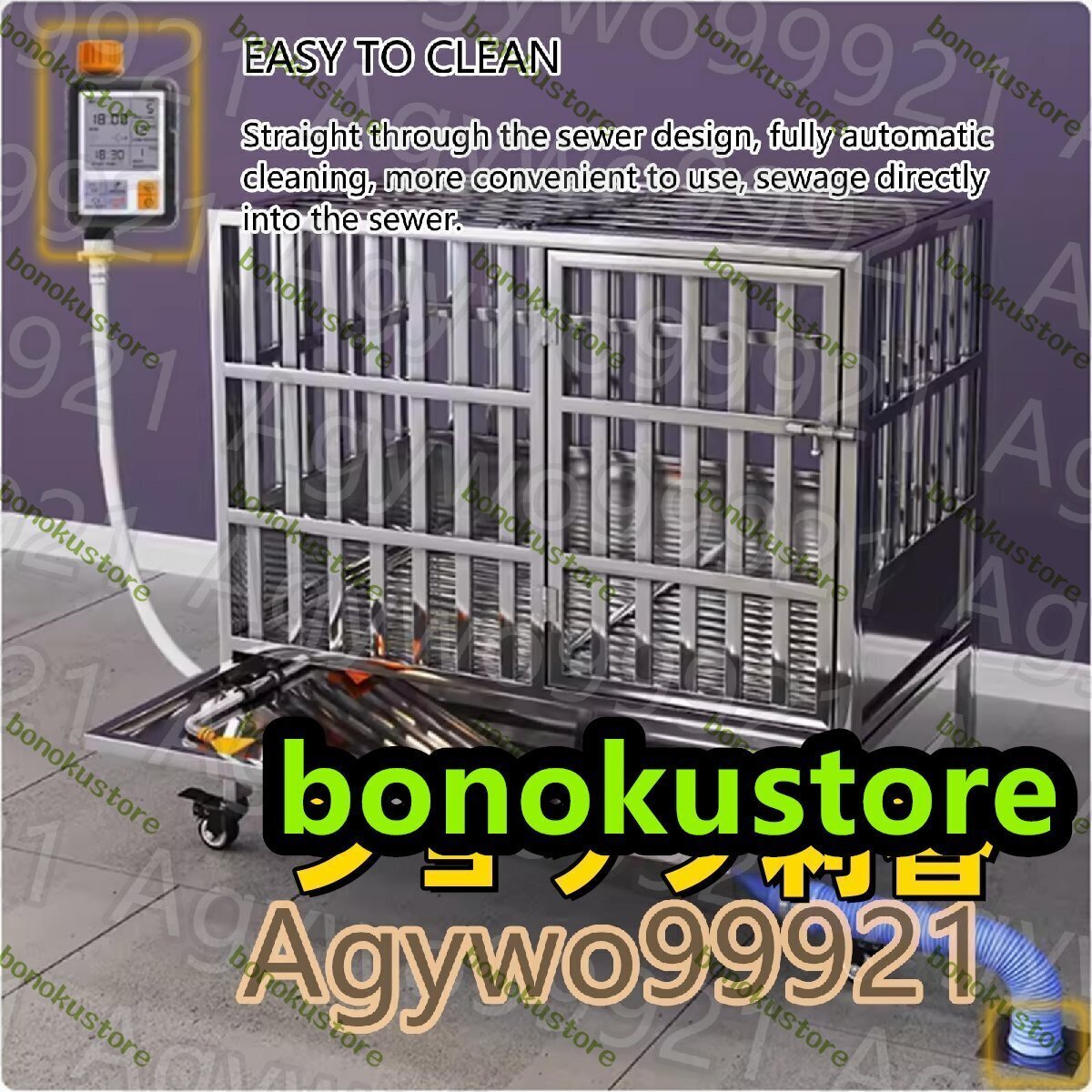 ステンレス製のペットケージ、犬用ケージ、車輪付きの屋内屋外犬小屋、自動で犬トイレを洗い流し付き 犬舎 脱走防止 小型犬/中型犬/大型犬(95cm/37.4in)