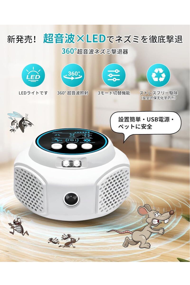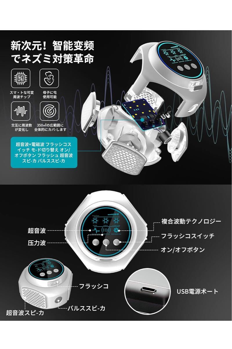 害虫駆除器 ネズミ駆除 超音波 電磁波 ストロボ光 PIRセンサー搭載 ゴキブリ 蚊など害虫撃退器 350平米対応 屋内 屋外兼用 ペットにも安全 静音無毒省エネ (