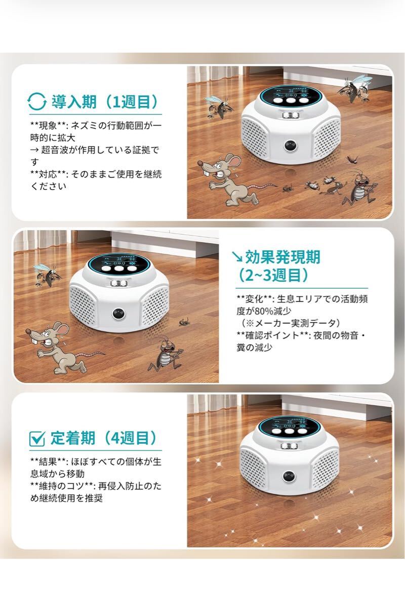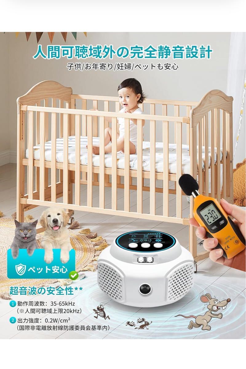 【安全・安心|無毒・無化学物質・ペットOK】 化学薬品・殺虫剤・毒餌・スプレー一切不使用!無毒・無放射線・無臭。発せられる超音波(22kHz-65kHz)は人間・犬・猫などのペットには聞こえず影響なし。お子様・妊婦さん・ペットのいるご家庭でも、キッチン周辺・寝室でも安心してご使用いただけます。死骸処理の煩わしさもありません。
