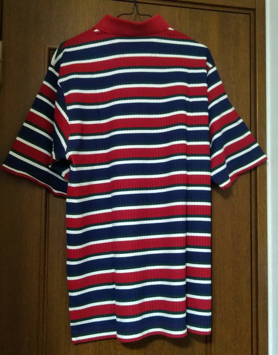【新品未使用★タグ付】FILA SPORTS 半袖ポロシャツ メンズL相当(表記XS)赤×紺×白×緑ボーダー 綿100%◆MADAGASCAR記載タグ/胸元刺繍