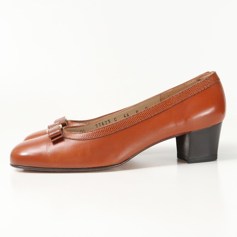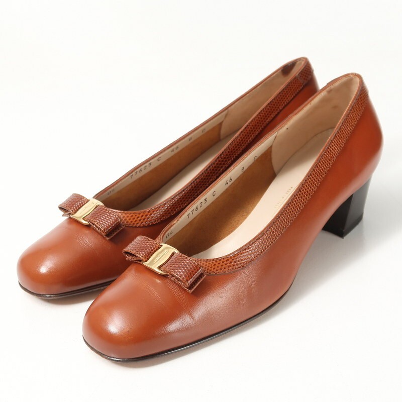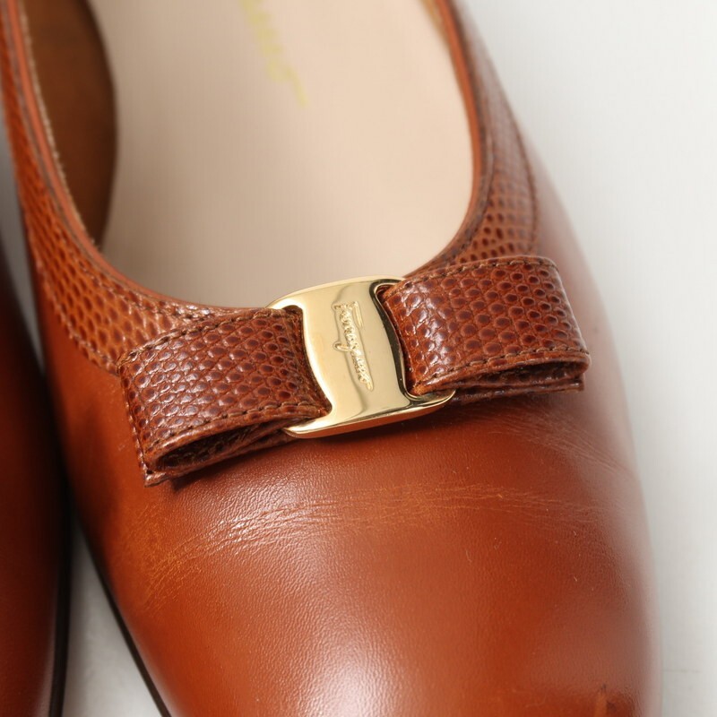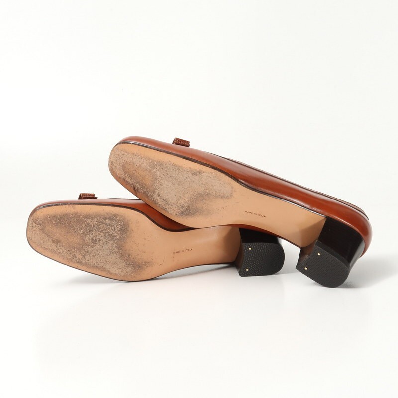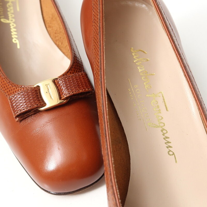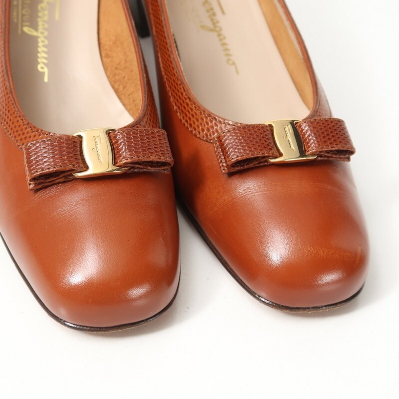 GR9350*イタリア製 サルヴァトーレフェラガモ 8C(25cm相当) ヴァラリボン レザーパンプス 靴 ブラウン Salvatore Ferragamo | |||