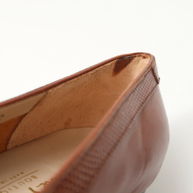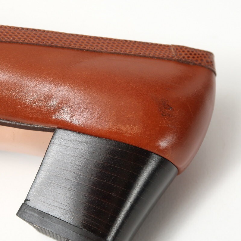 【コンディション詳細】 右足かかと(画像6)を中心に多少の擦れやよごれ、かかと内側にシミがみられますが、他特筆するようなダメージや問題点なくこれからも十分にご愛用いただけるお品です。 ・ヒールリフトは前の持ち主様によって交換済です。 ※ユーズド品にご理解いただき、ご入札くださいますようお願いいたします。 |