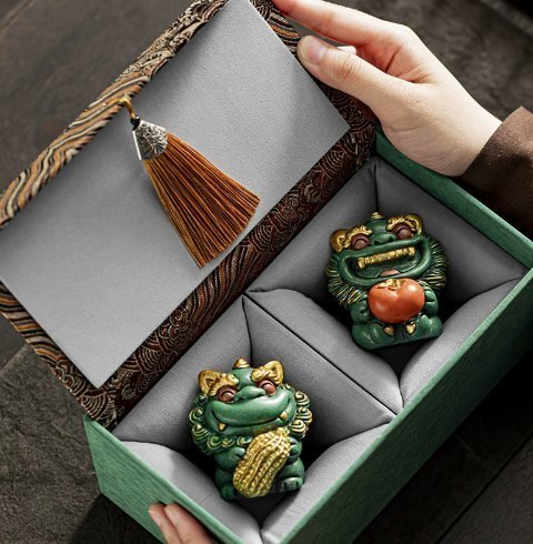 招き石獅子一対可按癒癒系好事発生創意的工芸品置物会社箇人土産