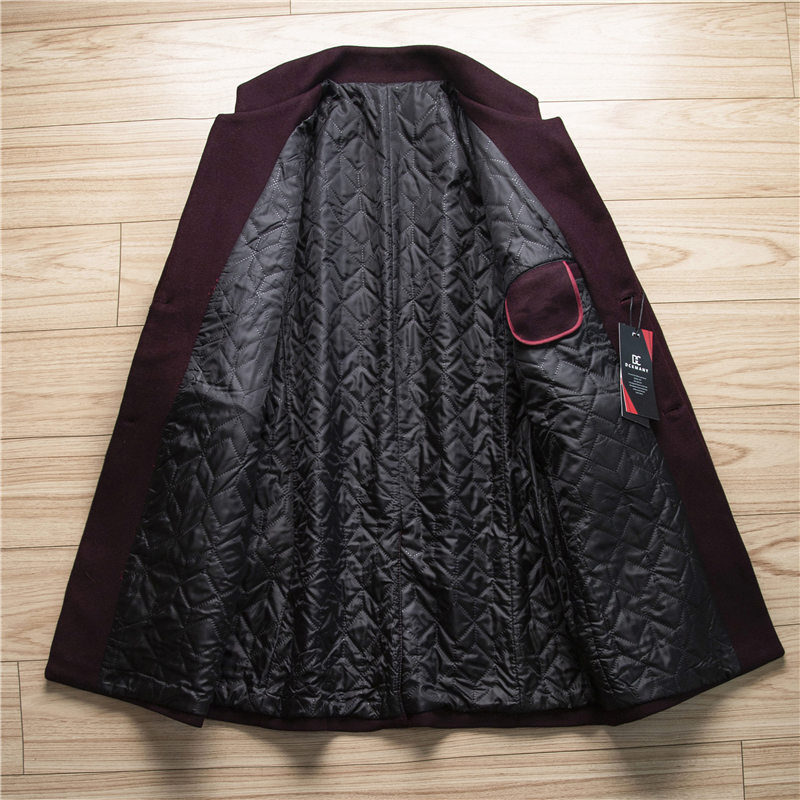 Y670-2XL程度 ワインレッド 新品DCKMANY ウール混 チェスターコート メンズ 立ち襟 ジャケット 中綿 ミドル ルーズ ビジネス 秋冬 アウター