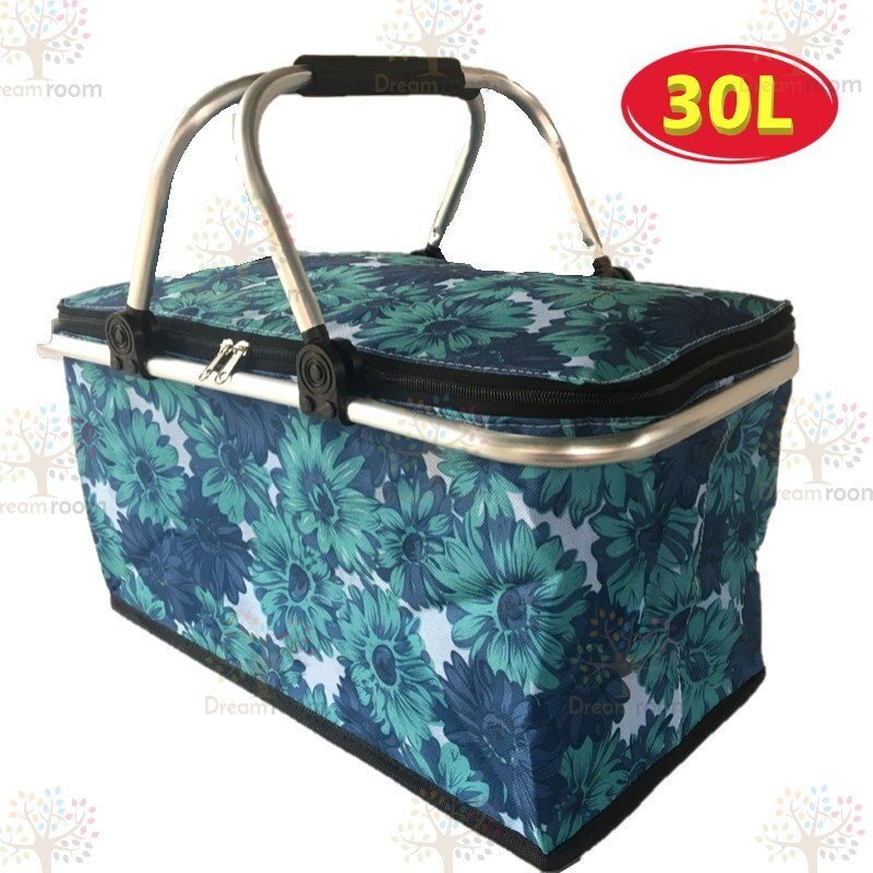保冷・保温 機能付き 30L 折りたたみ式 エコバッグ【F-215-19】大容量 バスケット 買い物かご 断熱バッグ屋外 ピクニック