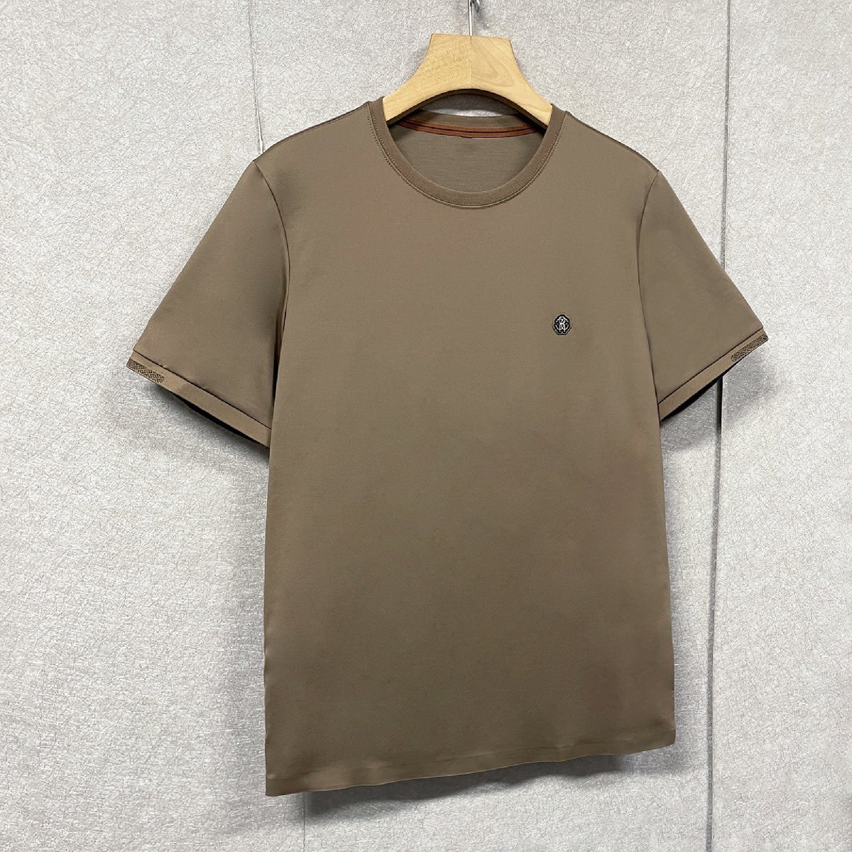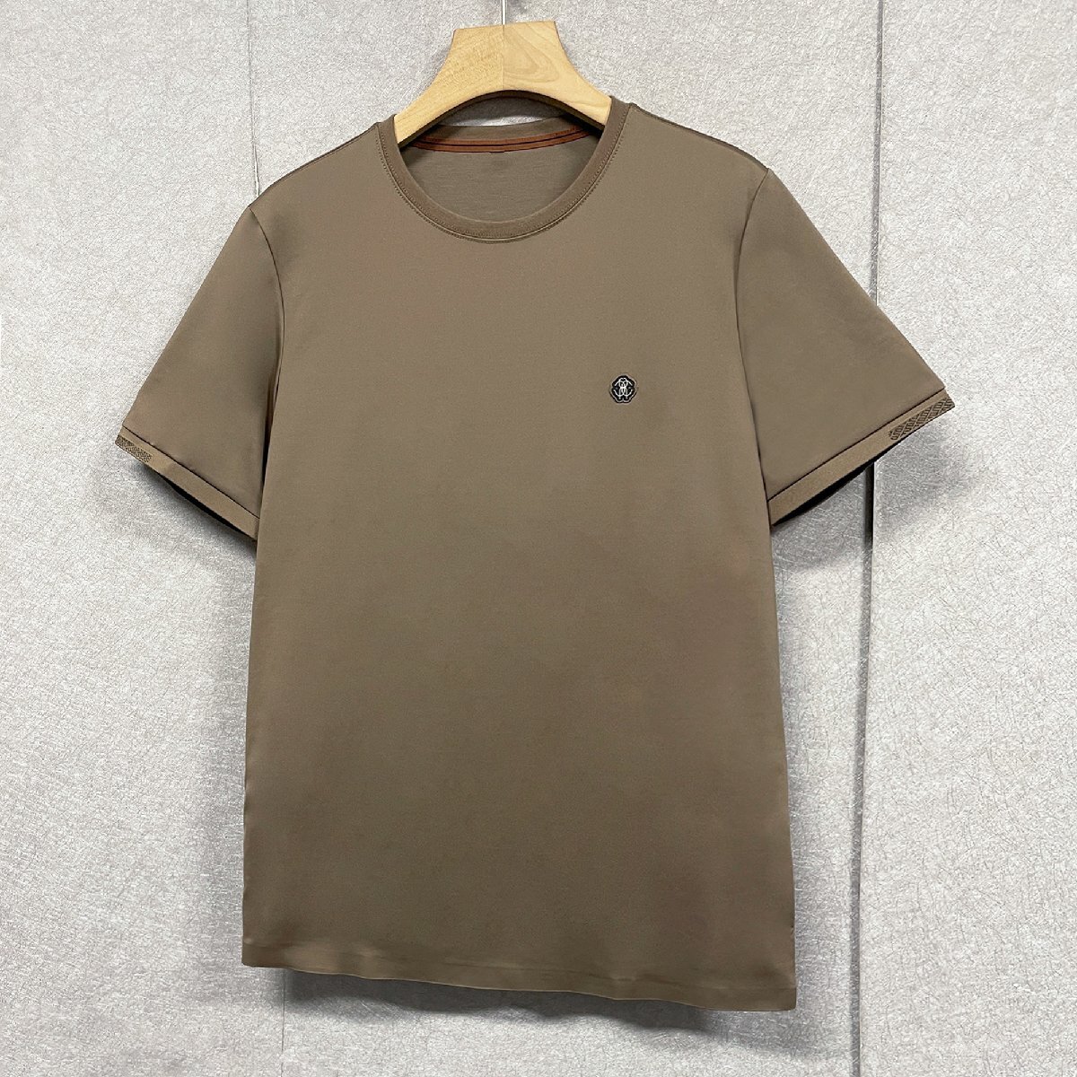 半袖シャツ イタリア製造 コットン混 快適 通気 薄手 滑らか ソフト 無地 カジュアル プルオーバー トップス 通勤 夏 SIZE:L