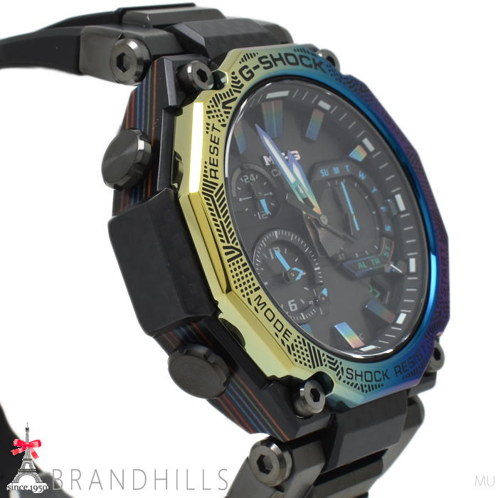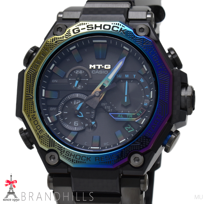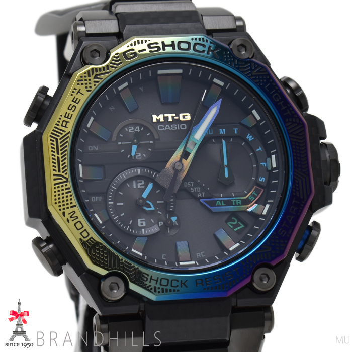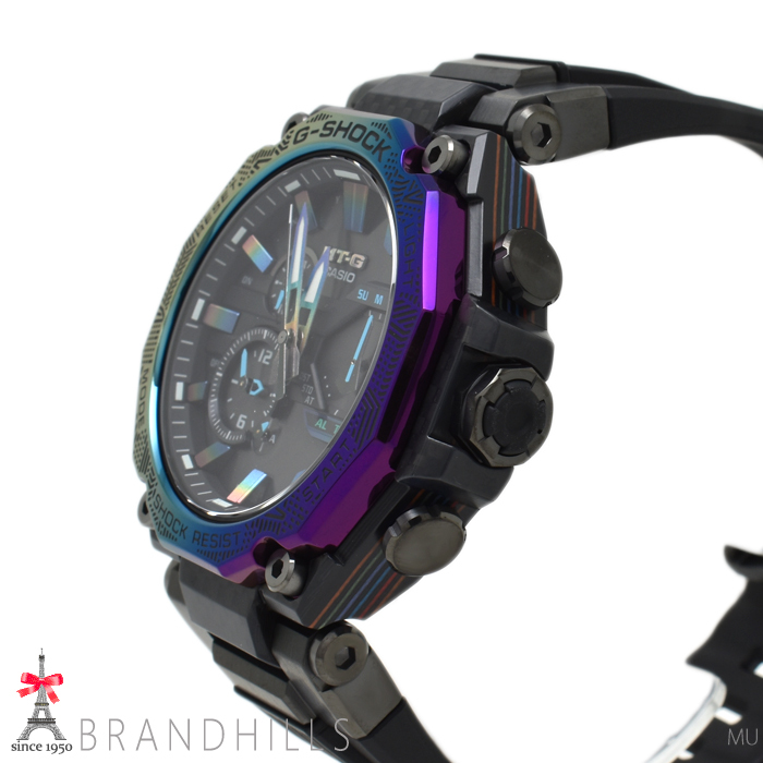 G-SHOCKの起源である樹脂素材とメタル素材を融合して革新的な構造美を追求するMT-Gシリーズ。巨大都市に煌めく夜の情景をイメージし、マルチカラーのカラーリングデザインの腕時計です。
