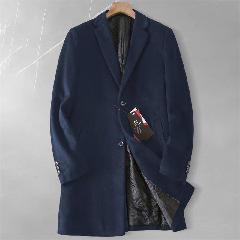 A440-3XLネイビー チェスターコート メンズ ミドル丈 中綿コート 新品DCKMANY 防寒 暖かい 紳士服 仕事 冬服 ウール混 ビジネス アウター
