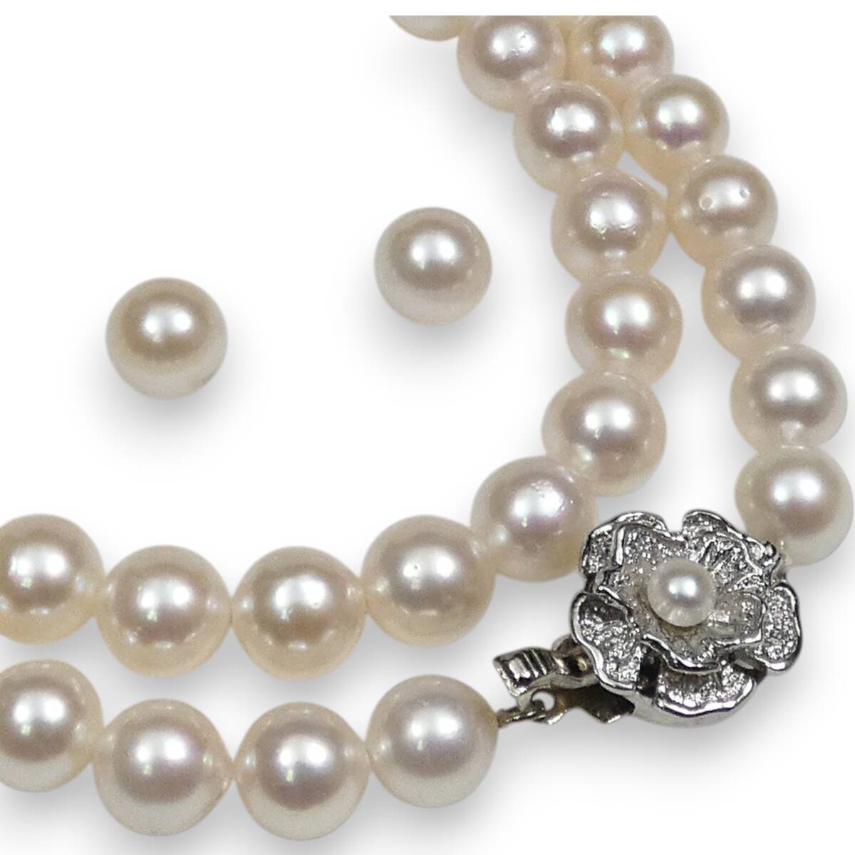 ※ 真珠の色には個体差があります。真珠は、太陽光でご覧いただくのと、電灯の下でご覧いただくのでは見え方が変化します。電灯の色や光量などでも変わります。また、お客様のパソコン
