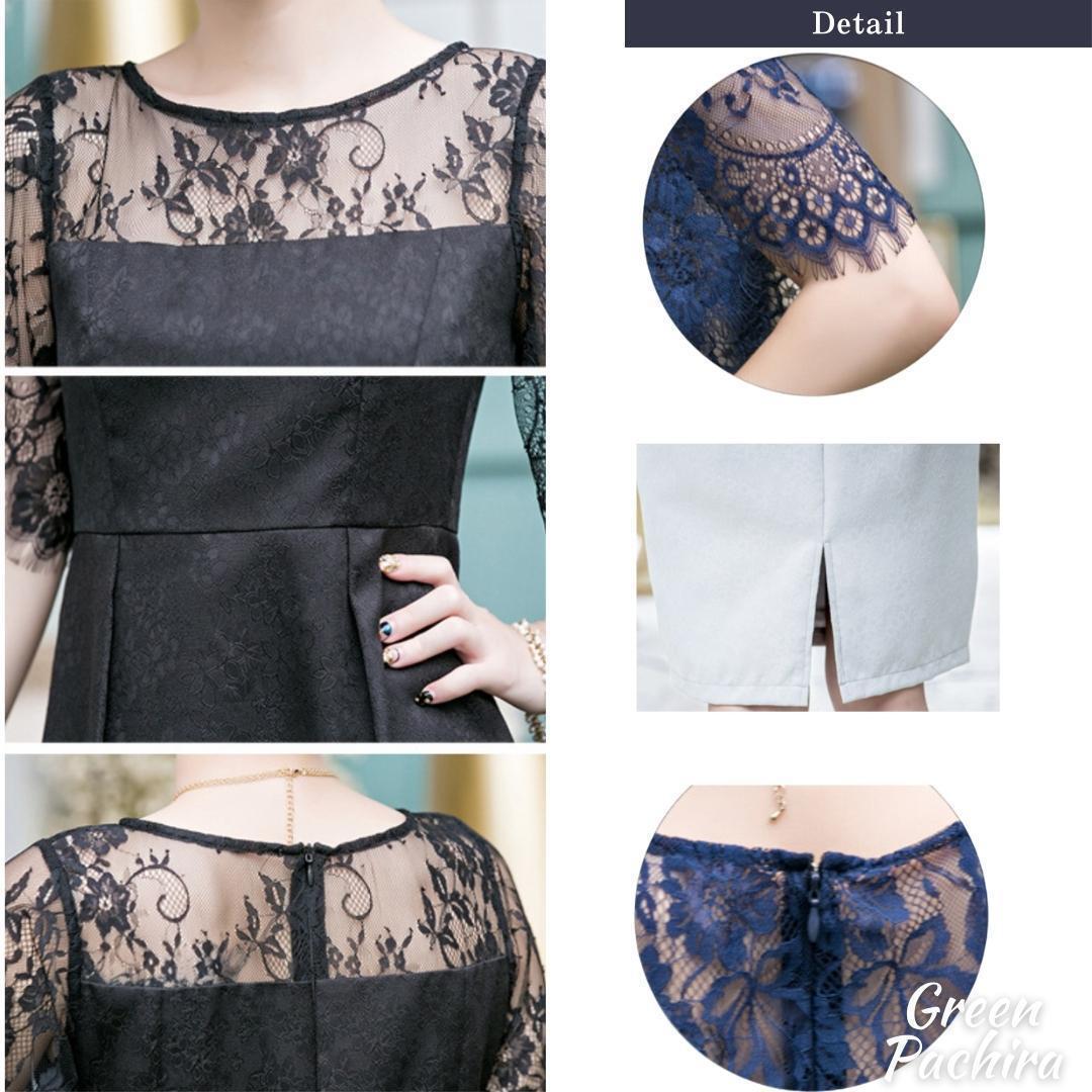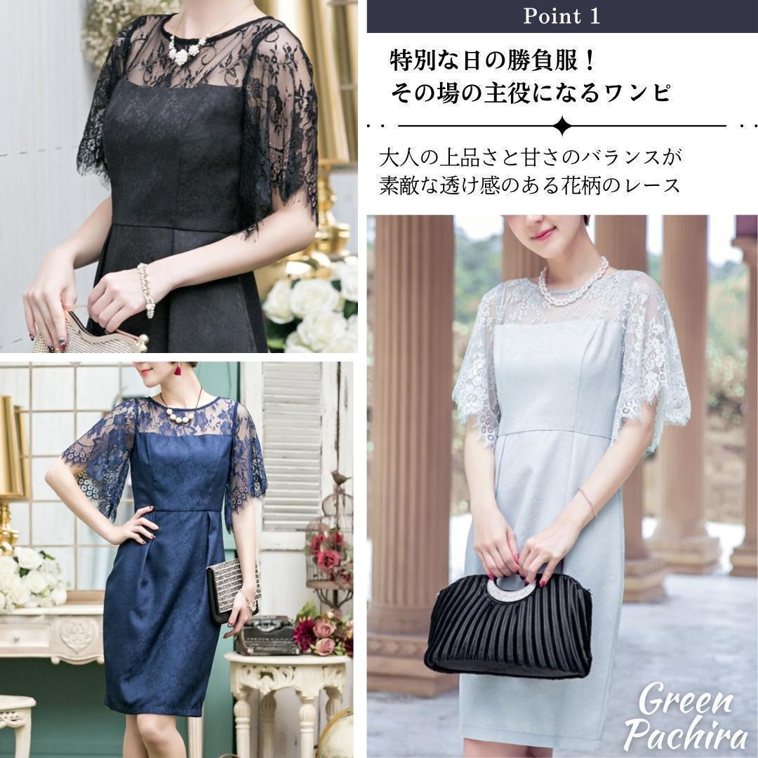 丸襟のクルーネックが首元をすっきりと見せ、セクシーさを演出。膝上丈のスカートは、軽やかな印象を与え、脚を美しく見せるスタイルアップ効果あり。上質なレース素材と丁寧な縫製で、フォーマルな場でも高見えする一押しのパーティードレスです。