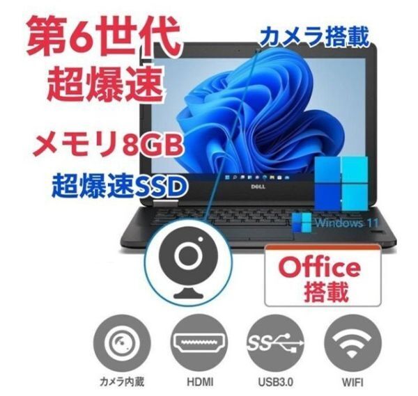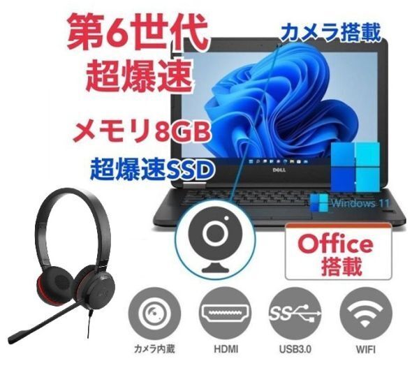 【サポート付き】DELL E7270 SSD:2TB 大容量メモリー:8GB Office2021 第6世代 core i5 カメラ ノイズキャンセリングヘッドセット