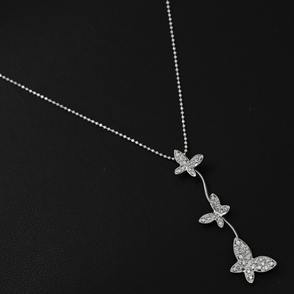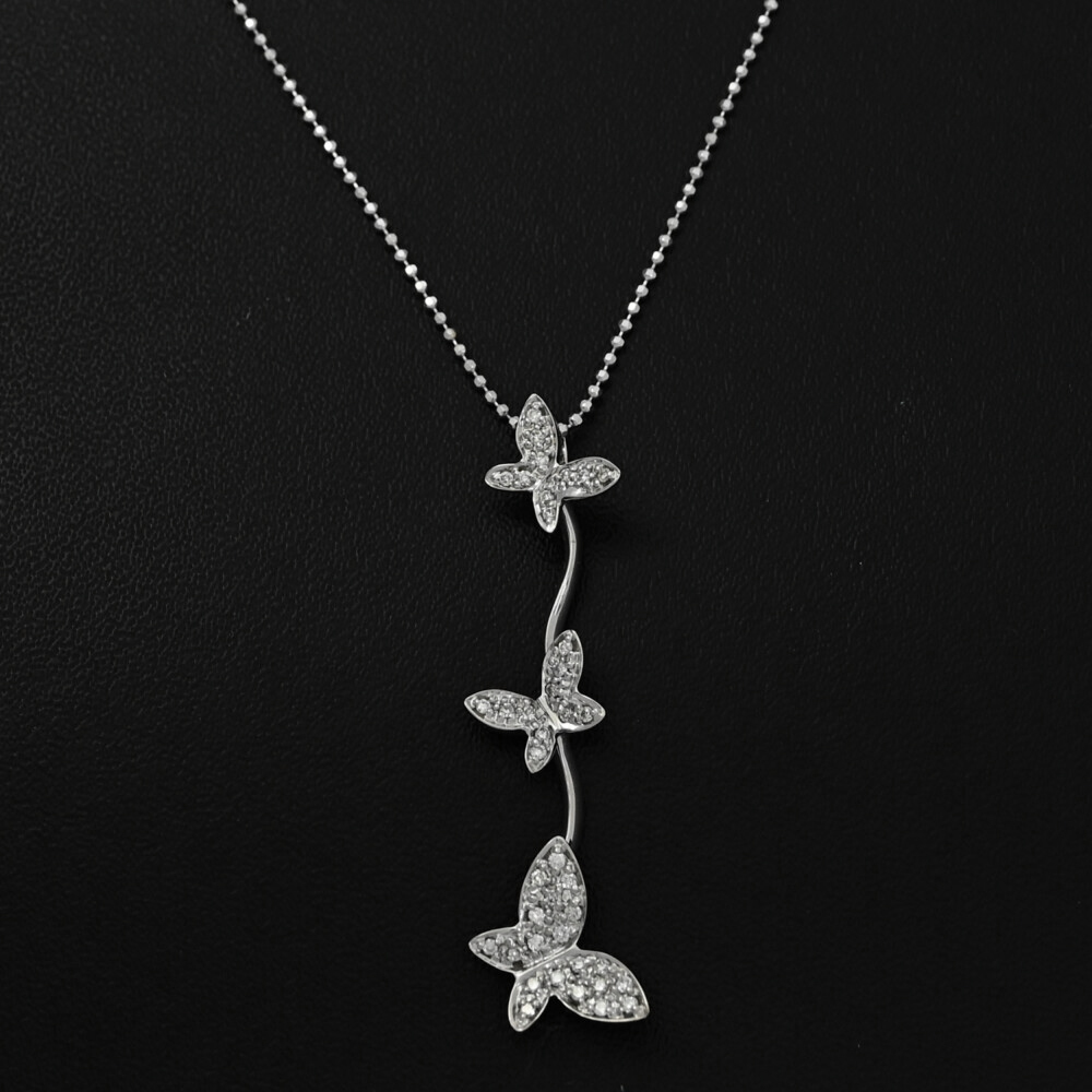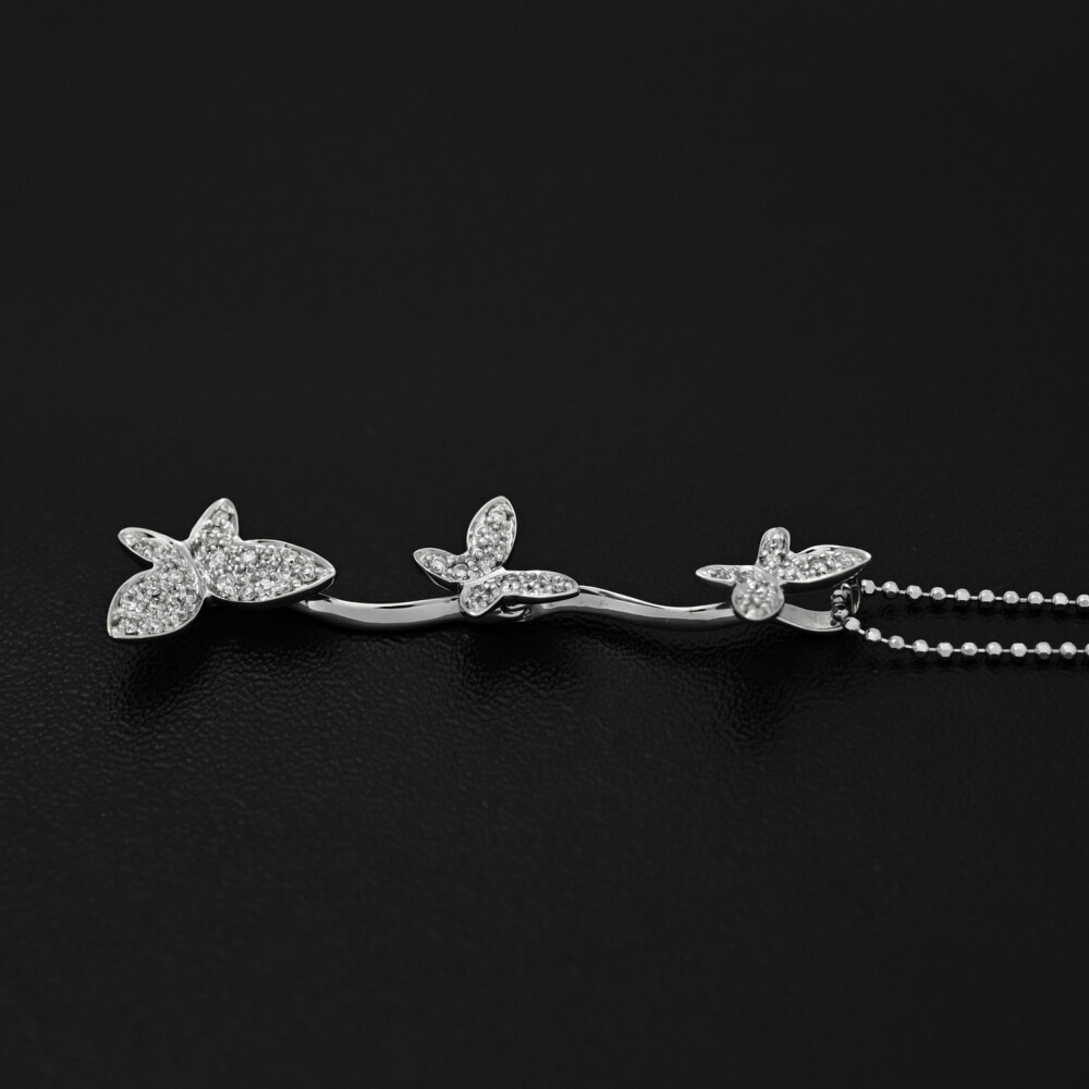 | 蝶 バタフライモチーフ パピヨン 40P・ダイヤモンド ネックレス・ペンダント/K18WG/750-4.5g/0.2ct/ホワイトゴールド/プレゼント お問合せ番号 ■586832 (NRGB2065L) | |