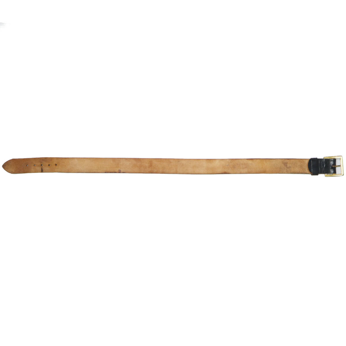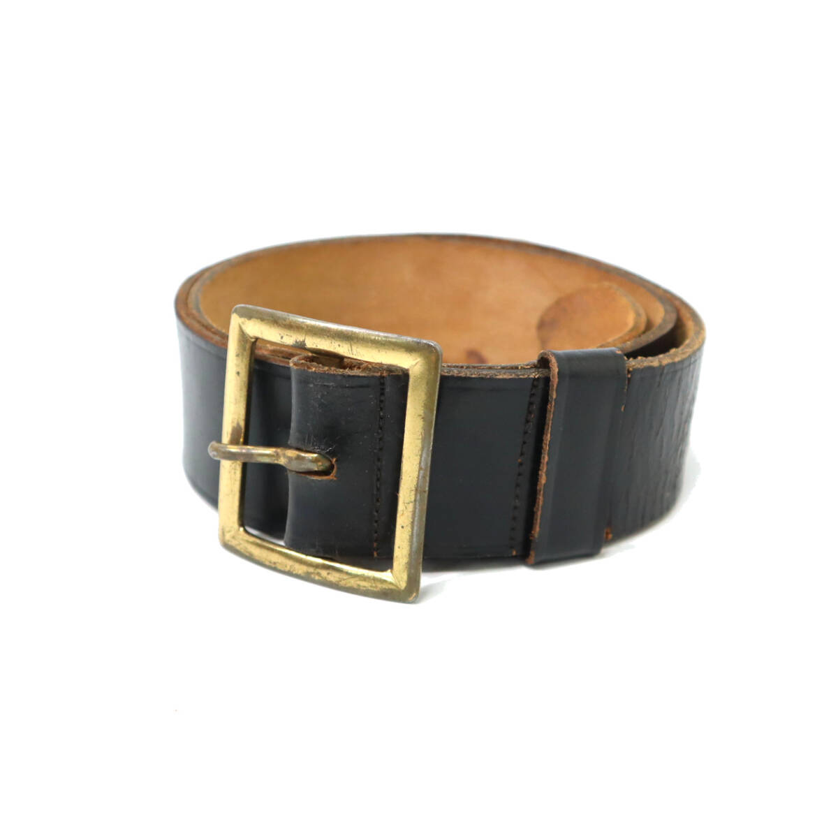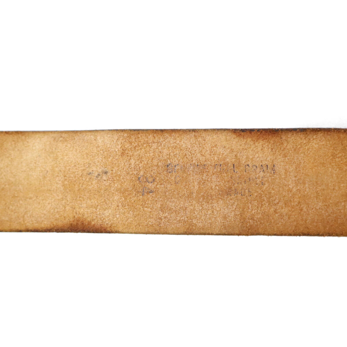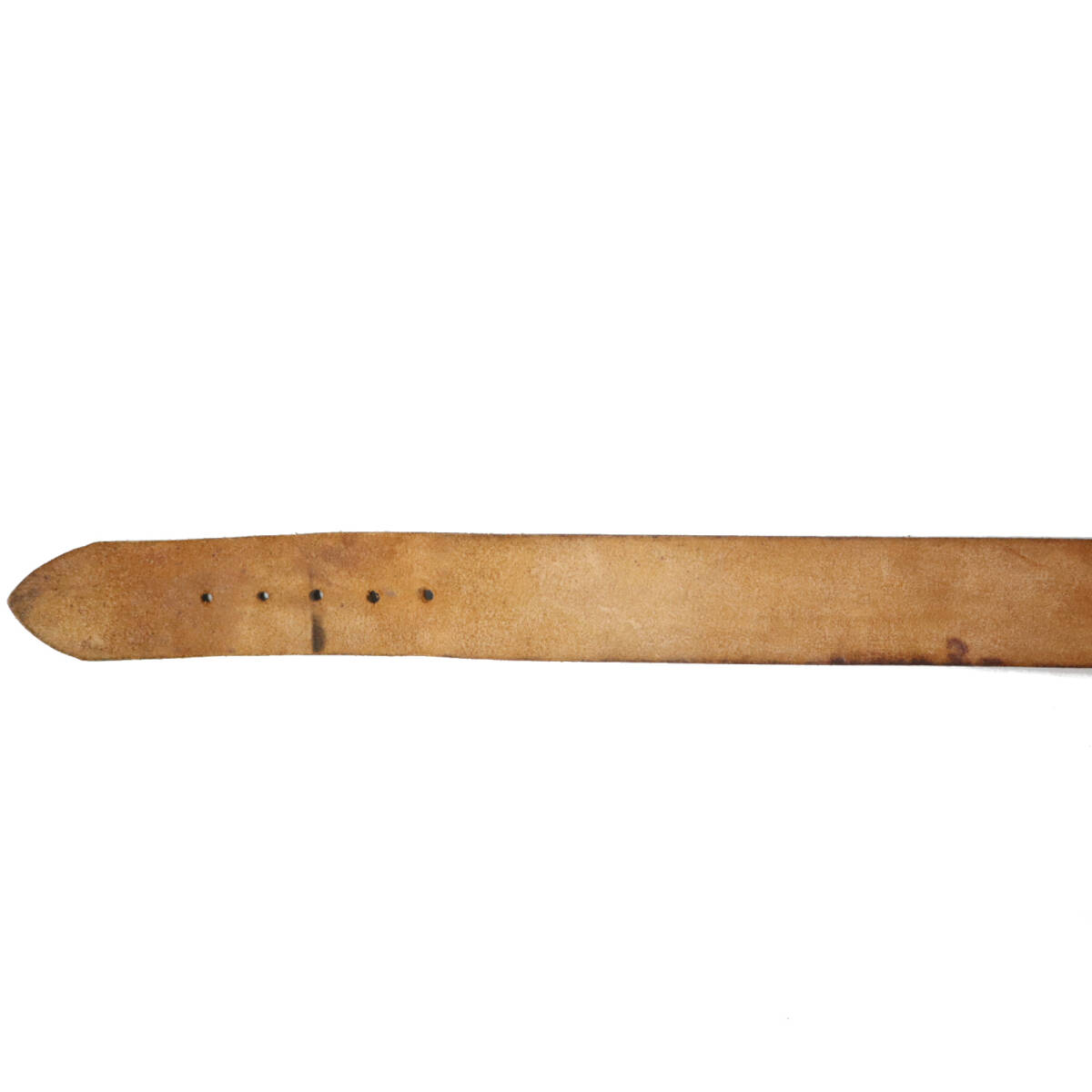 【状態】 バックルに傷やメッキの剥がれ、レザーに多くの傷や擦れ、裏面にシミ汚れ、多少の曲がり、レザー表面に細かなヒビがございます。ステッチの縫い目に小さな切れ、バックル付近やベルト穴付近のレザーが柔らかくなっていますので、他に比べ弱くなっている可能性がございます。全体的にレザーは柔らかく、試着もしてあり、簡単に切れそうな状態ではございませんが、古い物となりますので、ある程度は気にかけてご使用頂いた方が宜しいかと思います。ベルト裏面(スエード面)が色落ちします。乾いた白生地で拭くと茶色が移り、ジーンズなどの着用でも接地面が茶色くなります。ブラシなどで簡単に落とせますが、古い天然素材の為、その点ご了承下さい。バックルあたりから、レザーの粉が落ちる事がございますが、普通にご使用頂けます。販売前に磨いてあります。