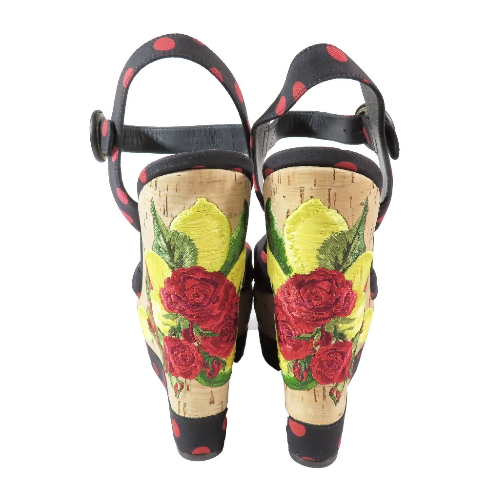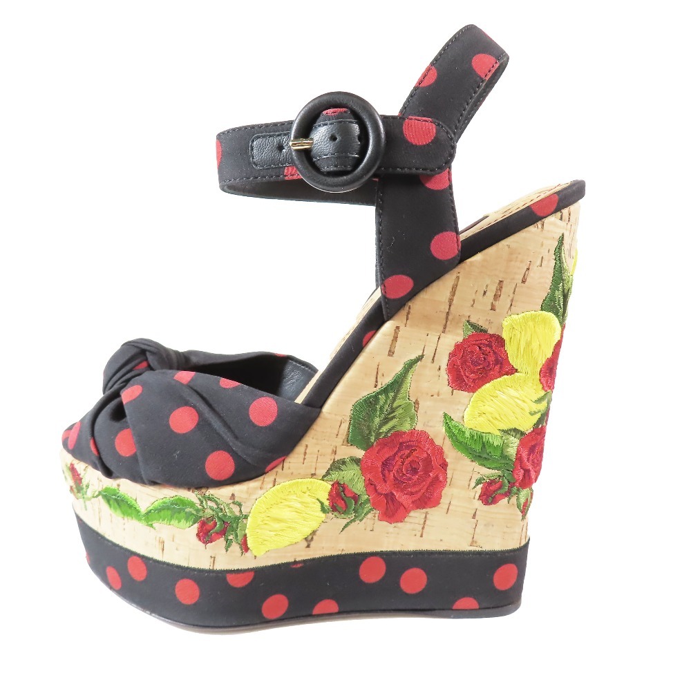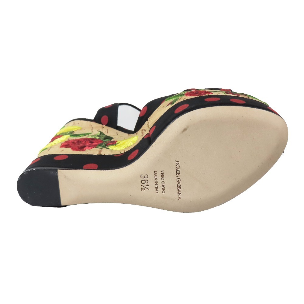 商品名:DOLCE & GABBANA ドルチェアンドガッバーナ ウェッジソールサンダル 薔薇柄 フラワー 刺繍 靴 ブラック ベージュ 36.5
