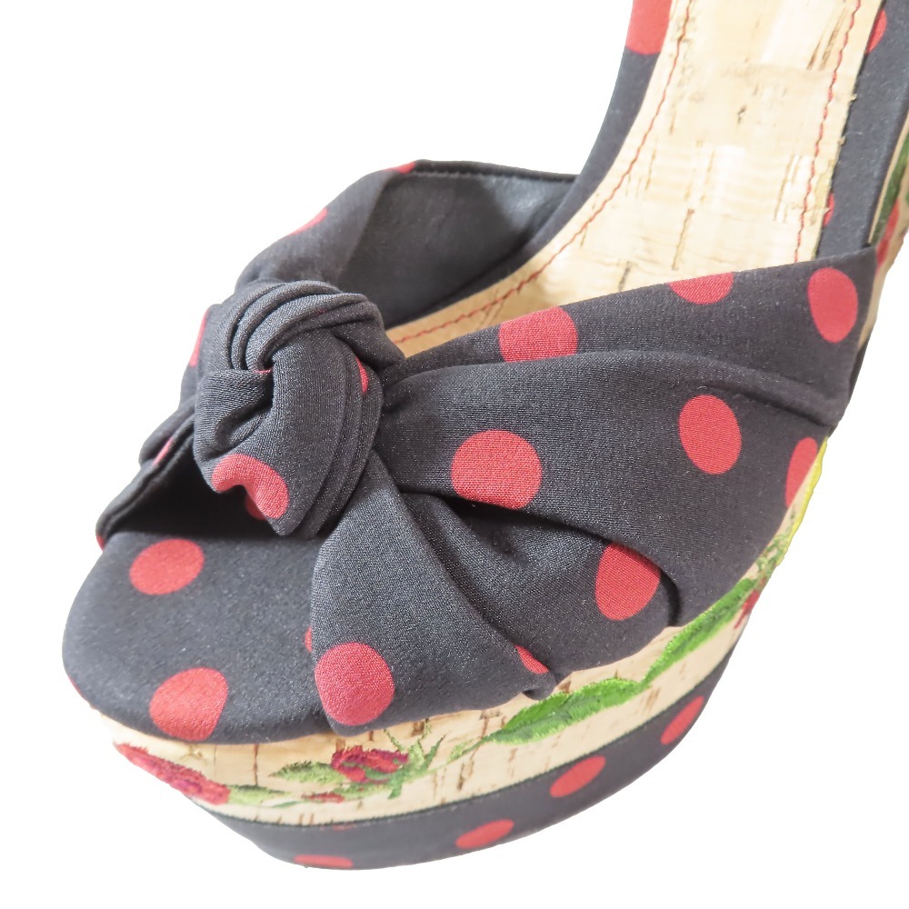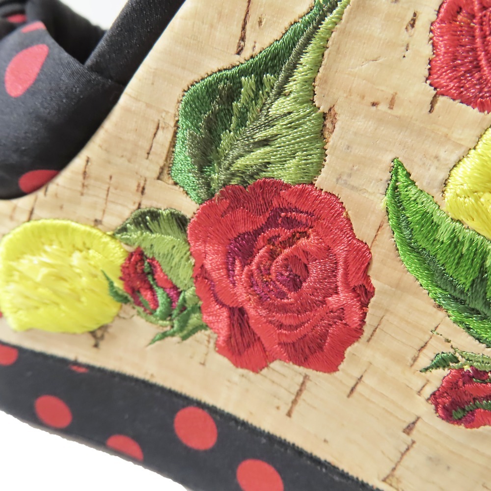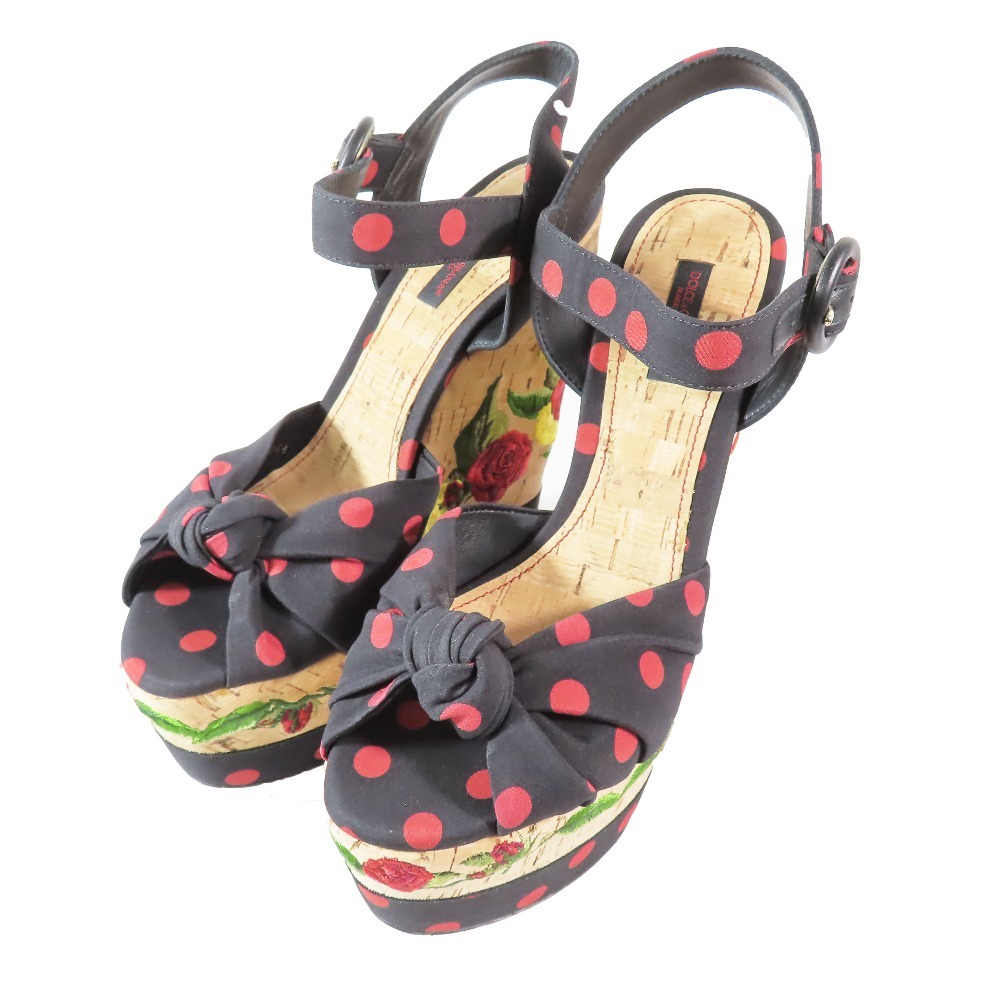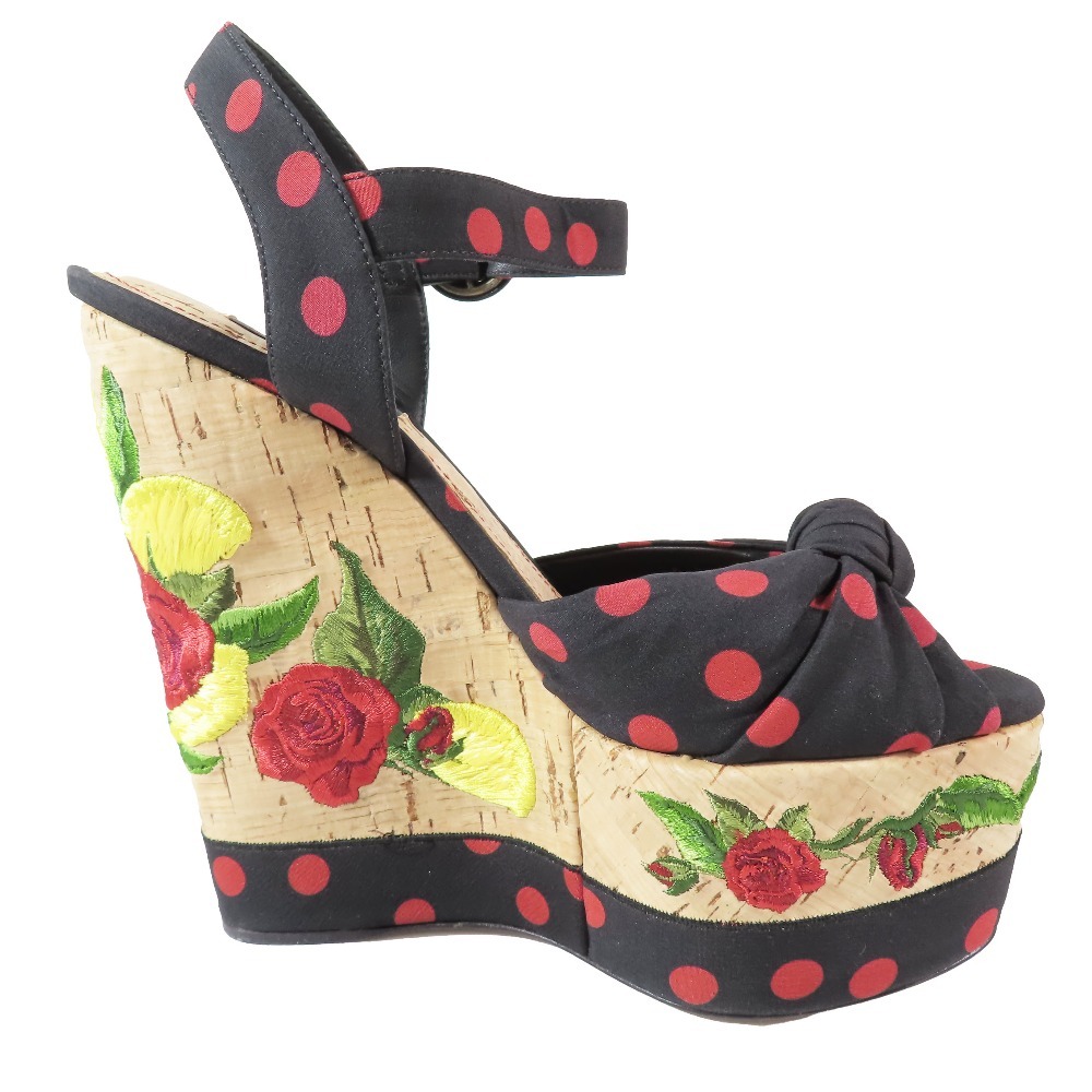 商品名:DOLCE & GABBANA ドルチェアンドガッバーナ ウェッジソールサンダル 薔薇柄 フラワー 刺繍 靴 ブラック ベージュ 36.5