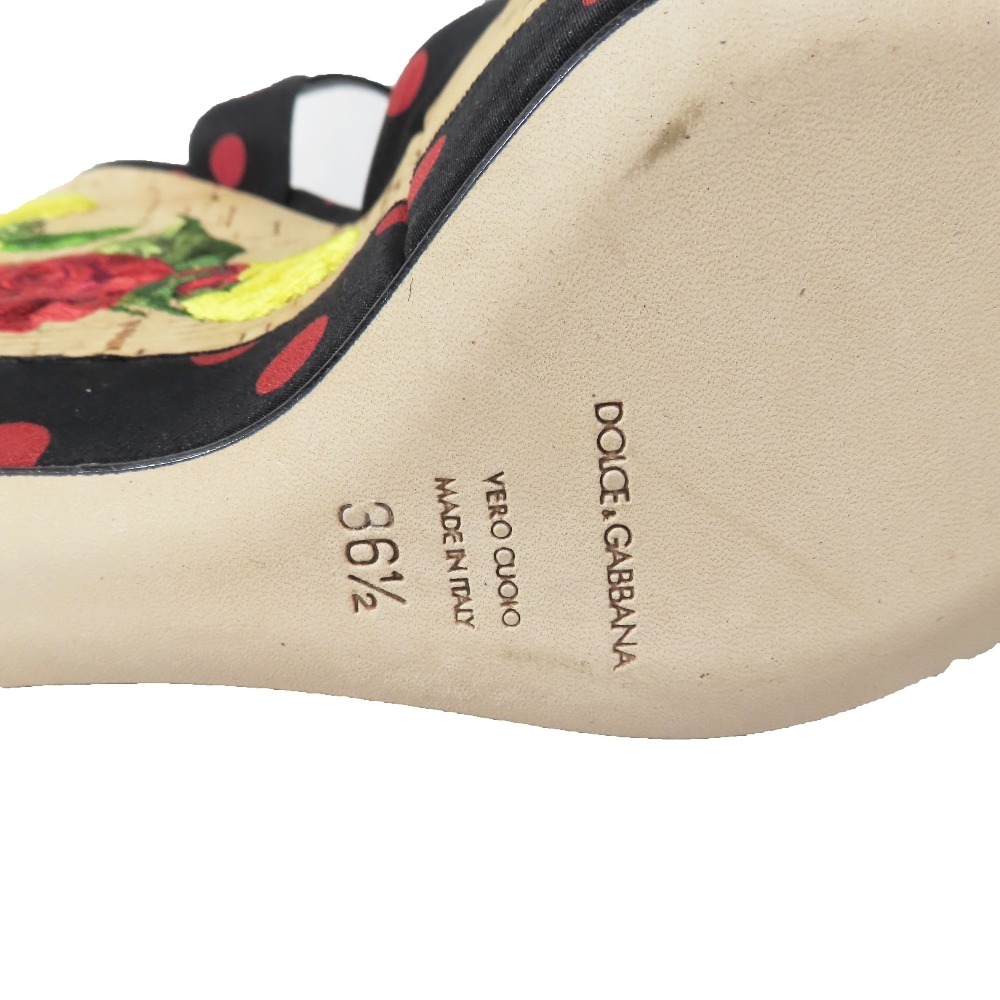 新品同様 DOLCE & GABBANA ドルチェアンドガッバーナ ウェッジソールサンダル 薔薇柄 フラワー 刺繍 靴 ブラック ベージュ 36.5