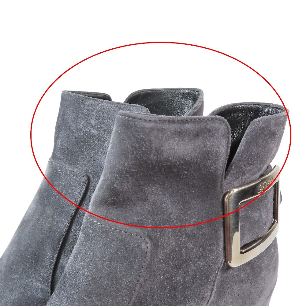 未使用 Roger Vivier ロジェヴィヴィエ ショートブーツ スクエアバックル スエード レザー シューズ 41 大きいサイズ グレー