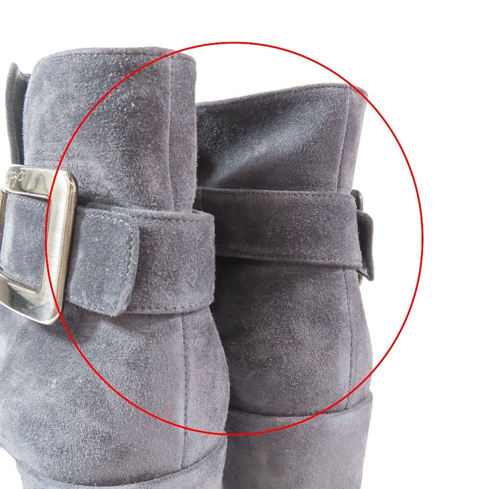 商品名:Roger Vivier ロジェヴィヴィエ ショートブーツ スクエアバックル スエード レザー シューズ 41 大きいサイズ グレー