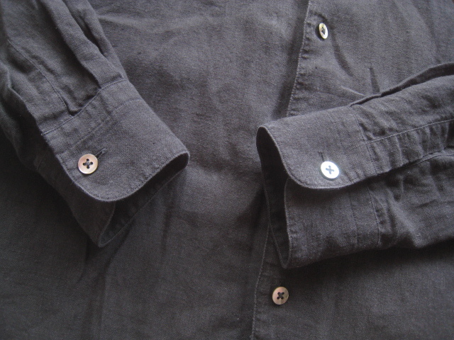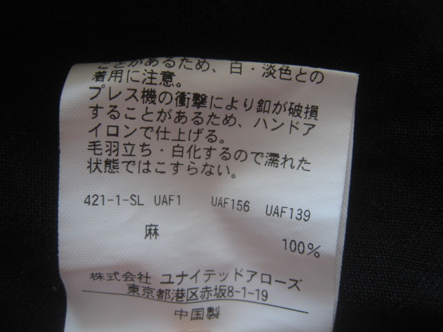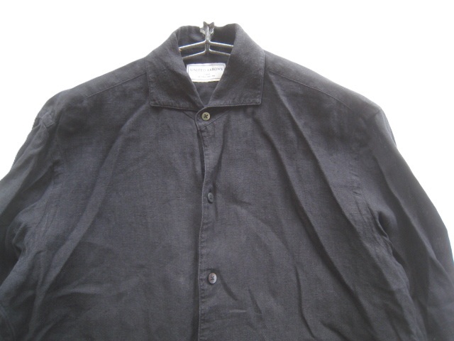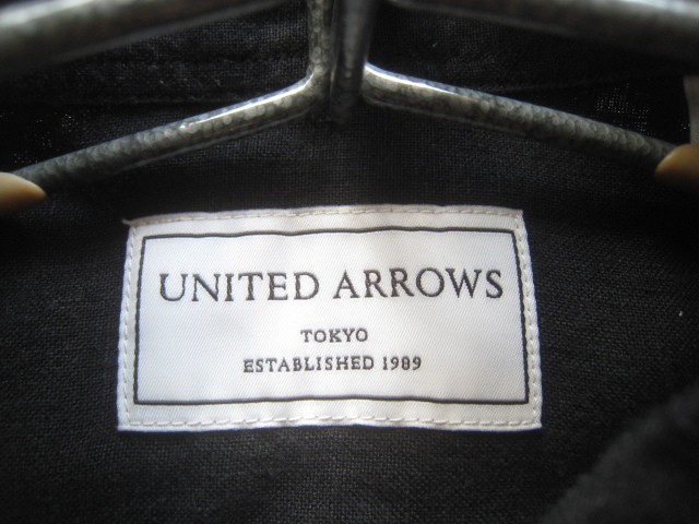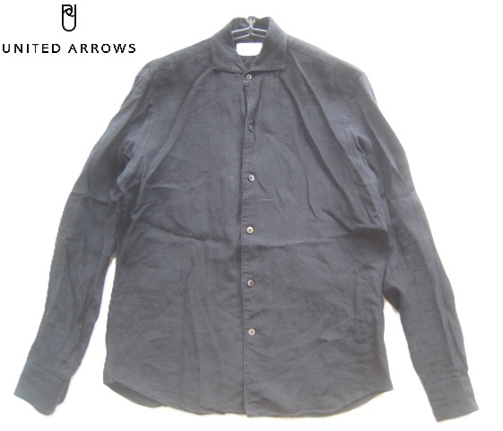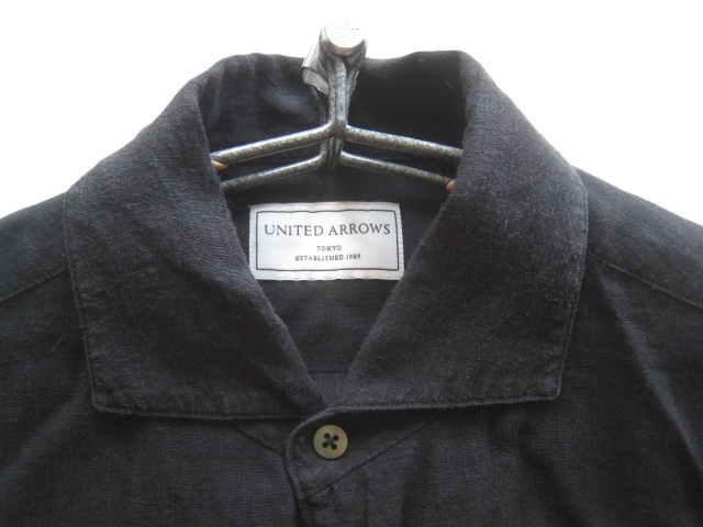 美品!!ユナイテッドアローズ UNITED ARROWS*麻100% リネンワイドスプレッドカラーシャツ 黒 ブラック S