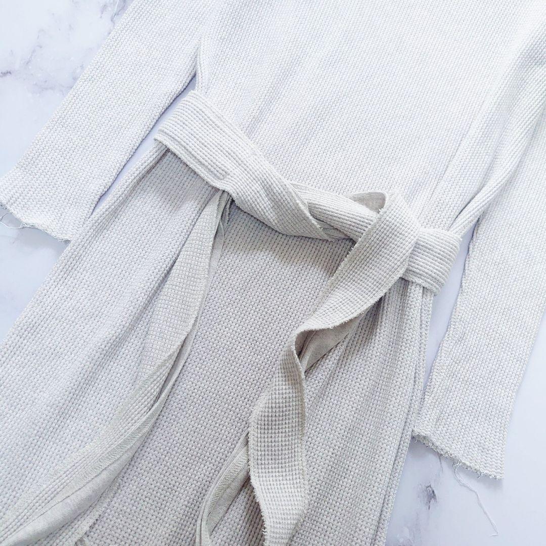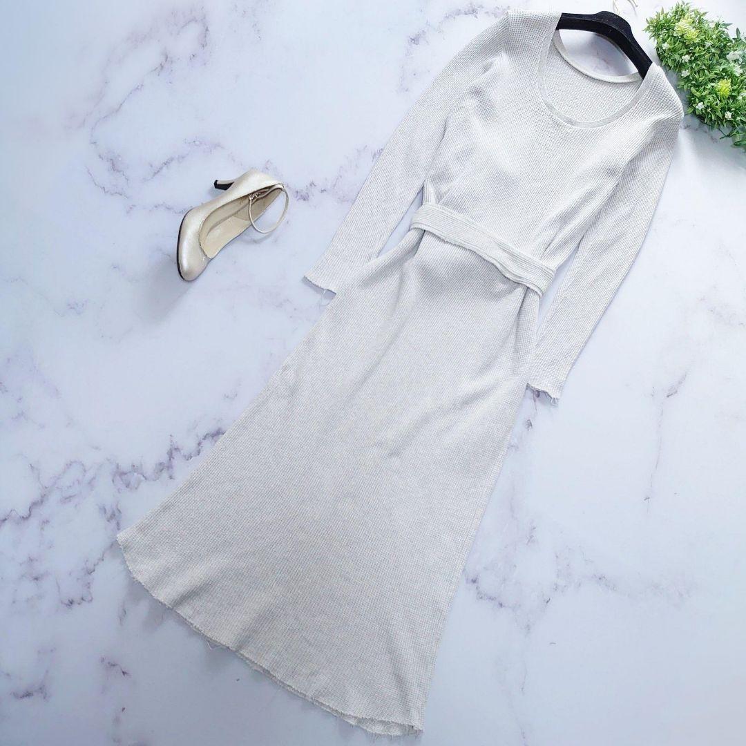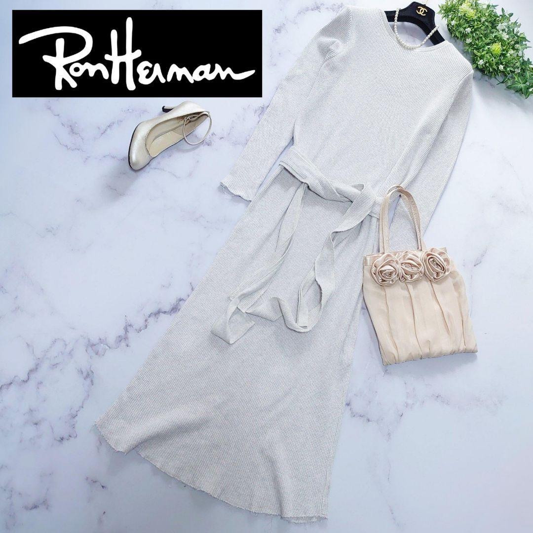 Ron Herman RHC ロンハーマン サーマルニット ベルト ロングワンピース サマーニット 長袖 マキシ丈 カットオフ XS M-L相当 プルオーバー クルーネック ライトグレー コットン レディース
