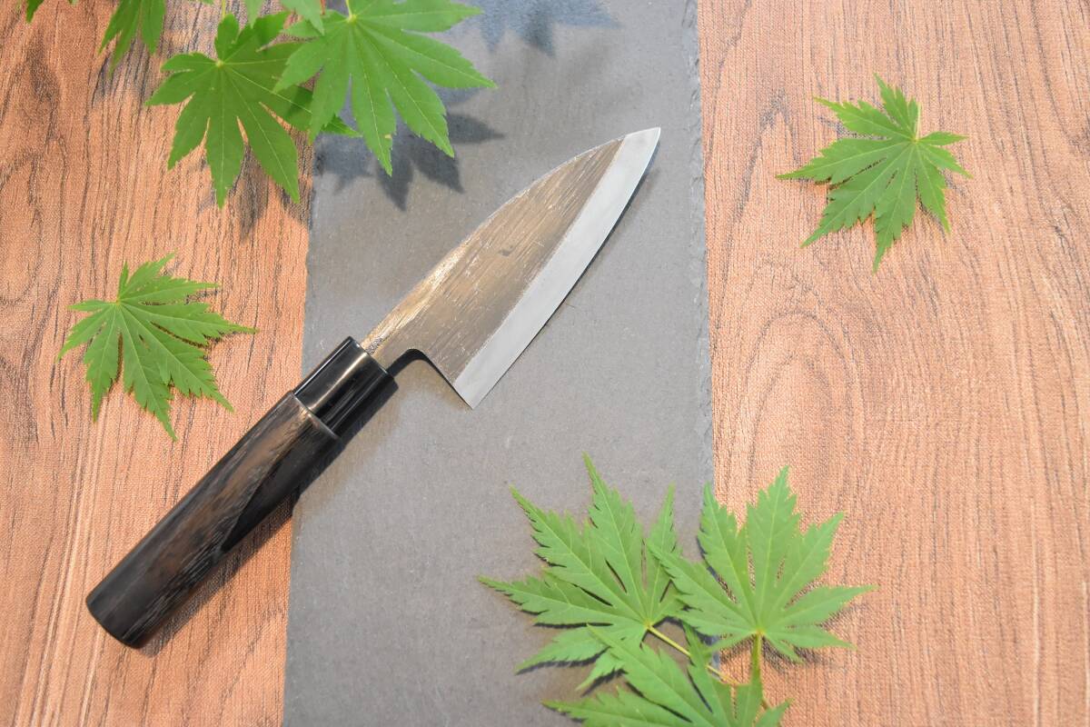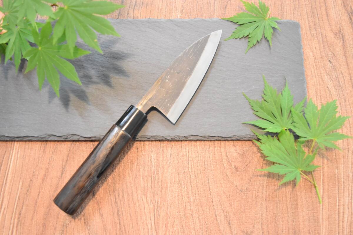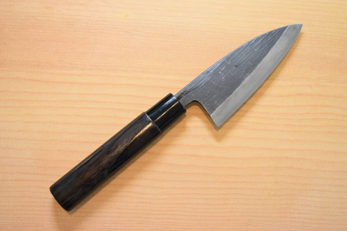 青紙スーパー鋼の黒打片刃鯵切り包丁3.5寸、焼栗柄 新品を送料込み 5,000円即決で販売します。