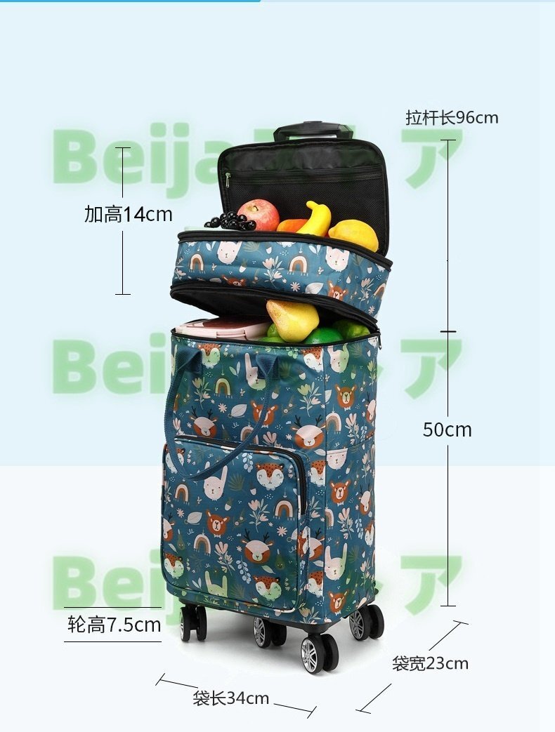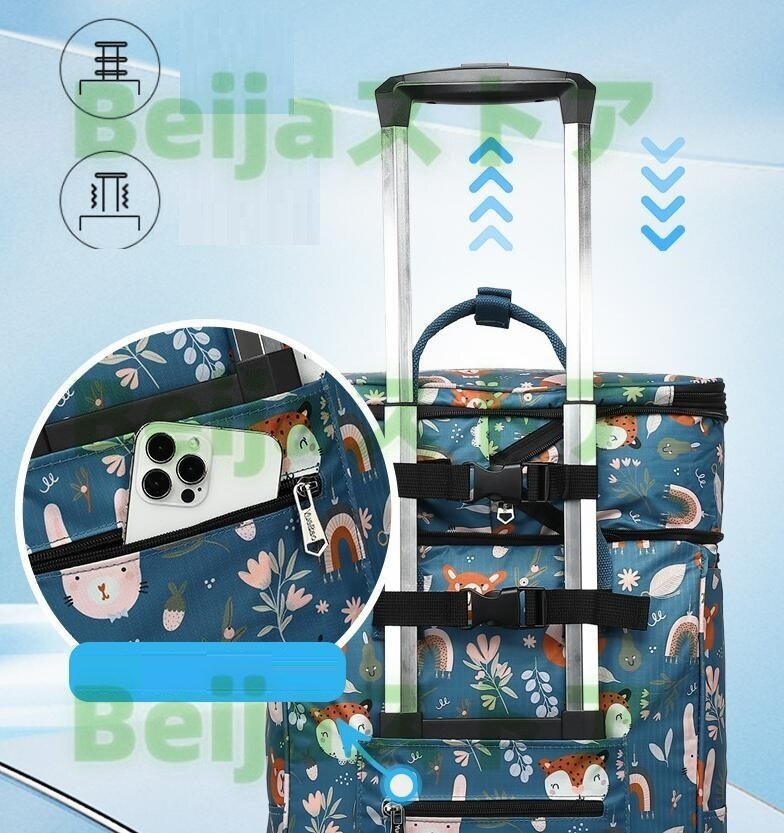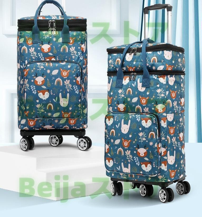 ショッピングカート 35L キャリー 拡張機能 保冷保温 折りたたみ 買い物カート360°回転 大容量 軽量 買い物 アウトドア(ウサギ柄)
