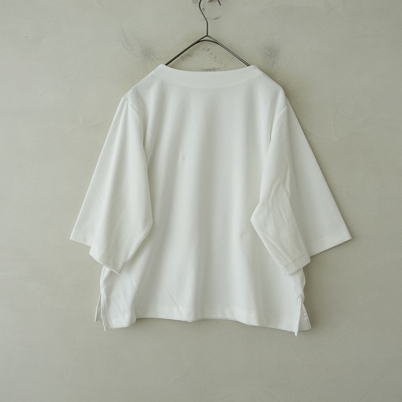 | lelillのCOZY パイルTシャツです。カラーはホワイトでパイル地で仕立てられております。袖丈は7分くらい、シンプルなアイテムです。定価(メーカー希望小売価格)14,300円 税込みの商品です。 |