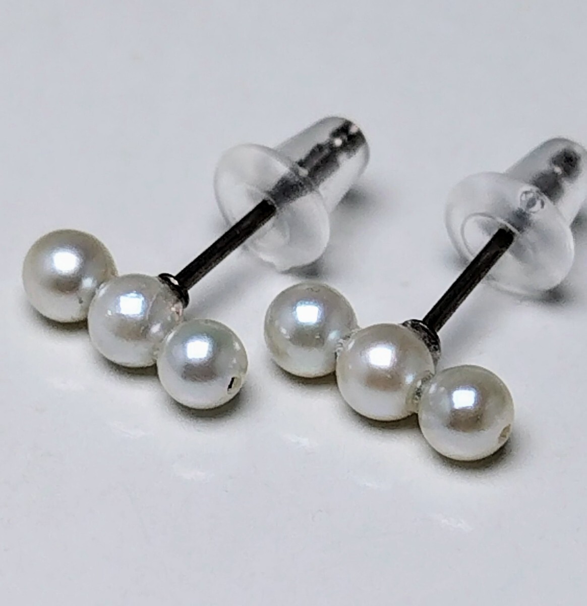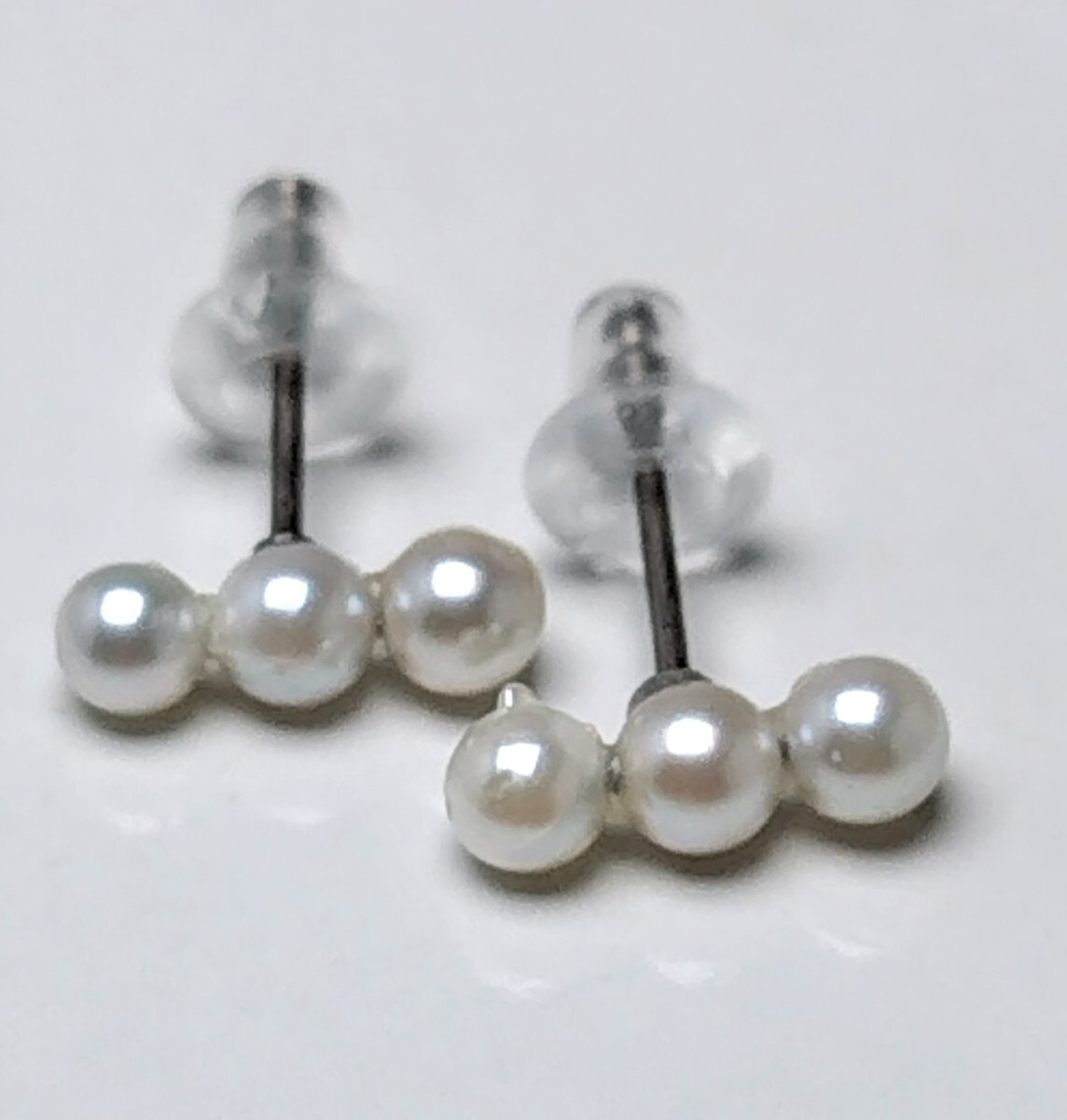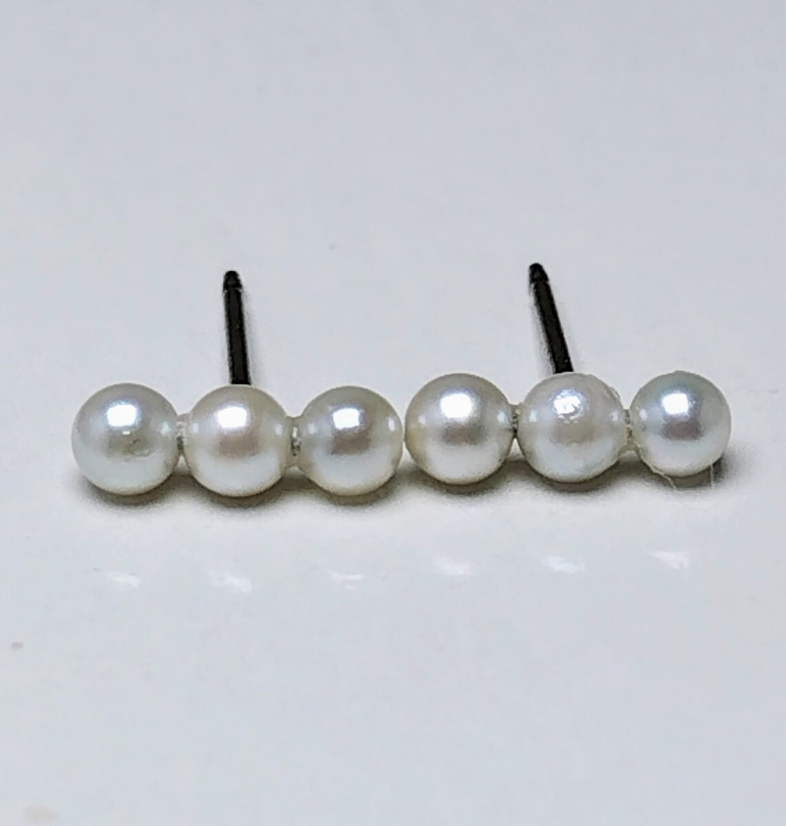 真珠専科 大特価3㎜ ベビーあこや真珠 3連 ピアス