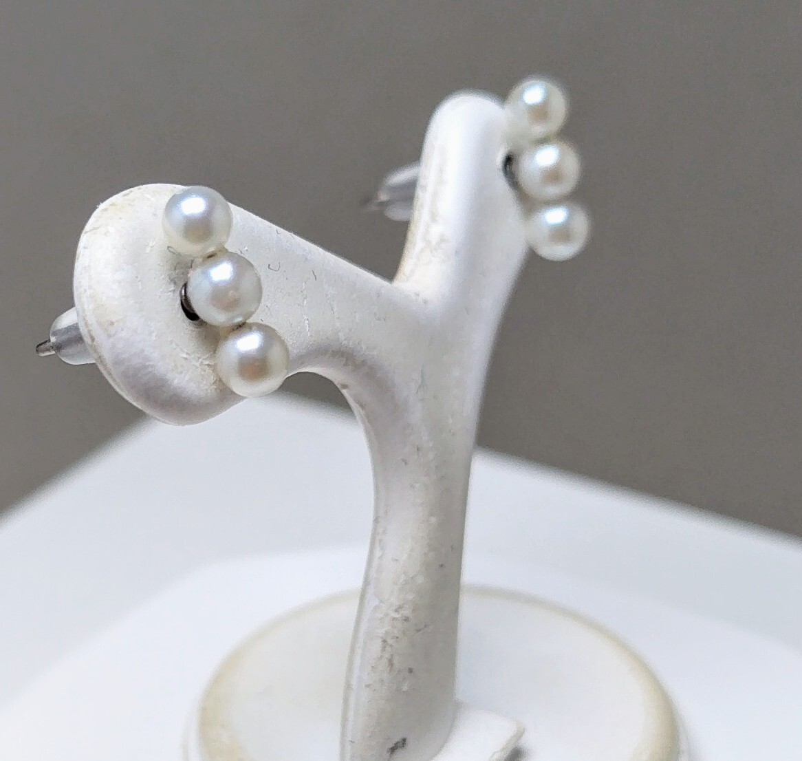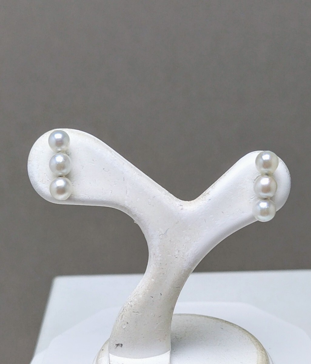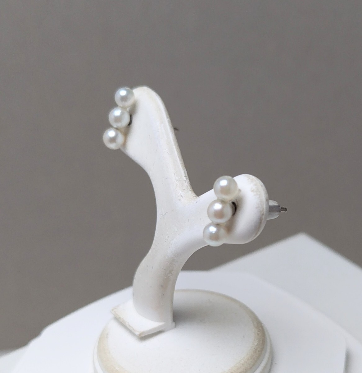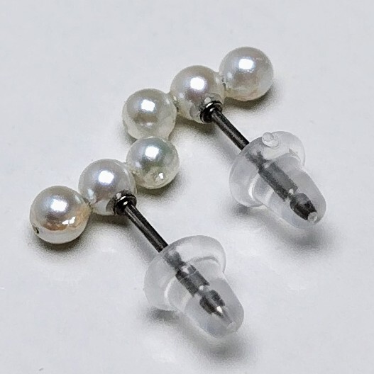 真珠専科 大特価3㎜ ベビーあこや真珠 3連 ピアス