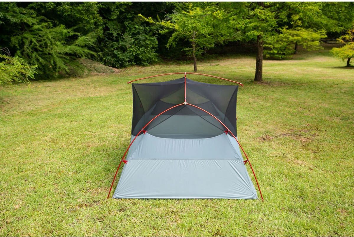 2人用のLT2は、ネオロフトのラージサイズを2枚並べて使用したときも、頭上や足元に物を置くスペースが確保できる広さ。入り口と前室はふたつあり、2人でストレスなく使用できます。フレームを交差させるハブの位置も高くなったため、ヘッドスペースにもさらに余裕ができました。改良されたベンチレーターによって通気性も向上しています。フライシートやメッシュには原料の段階で染色するソリューションダイを採用し、紫外線に強く、色褪せしにくくなっただけでなく、製造時の環境負荷も大幅に減らしています。広々とした空間と優れた通気性を備え、さらにサスティナビリティにも配慮した最新モデルです。