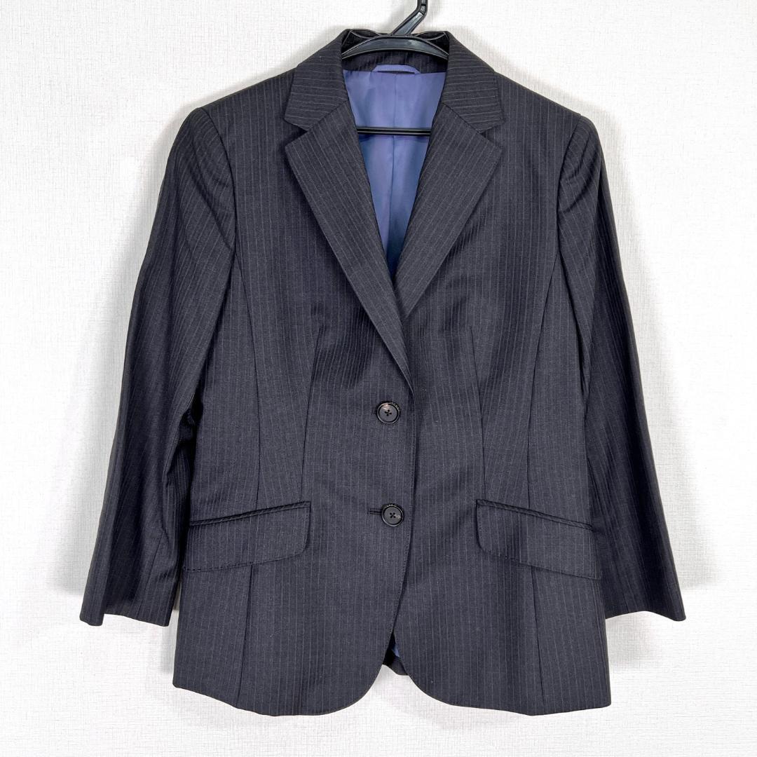 【J.PRESS】ジェイプレス オンワード樫山 ダークグレー系 ストライプ ジャケット ブレザー 女性用 レディース 11【a006】