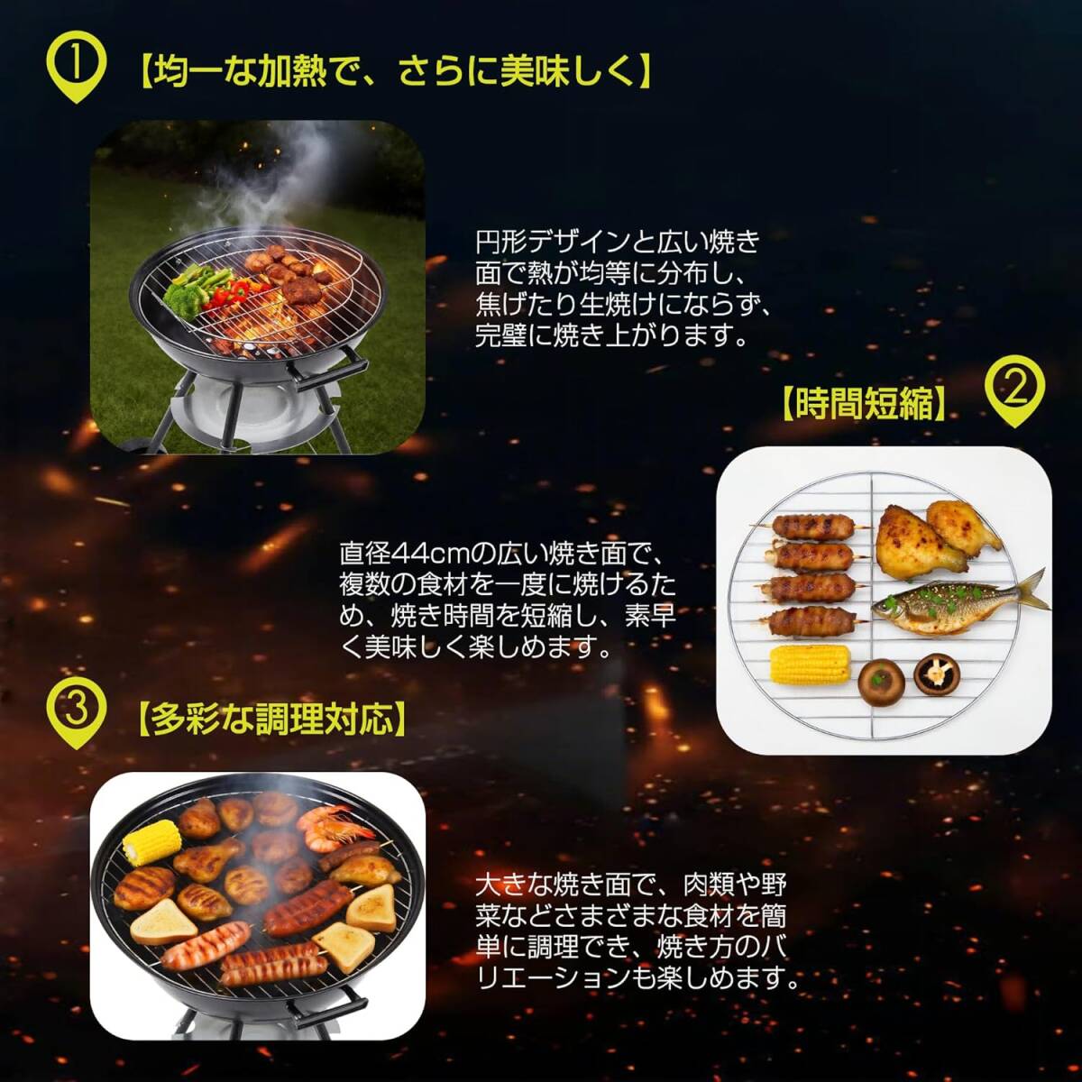• 【調節可能な通風口付き 精密な火力調整】通風口を調節することで、高温での焼きから低温でのスロー焼きまで、さまざまな焼き加減に対応します。灰受け口と灰受けトレイ付き 焼き後の灰もスッキリ