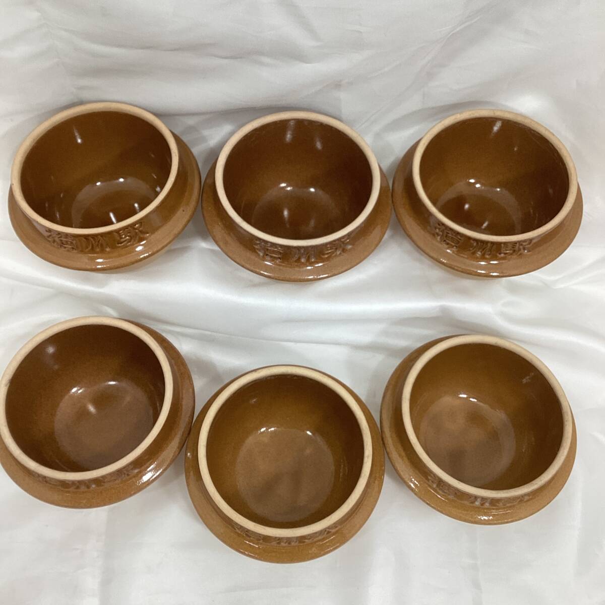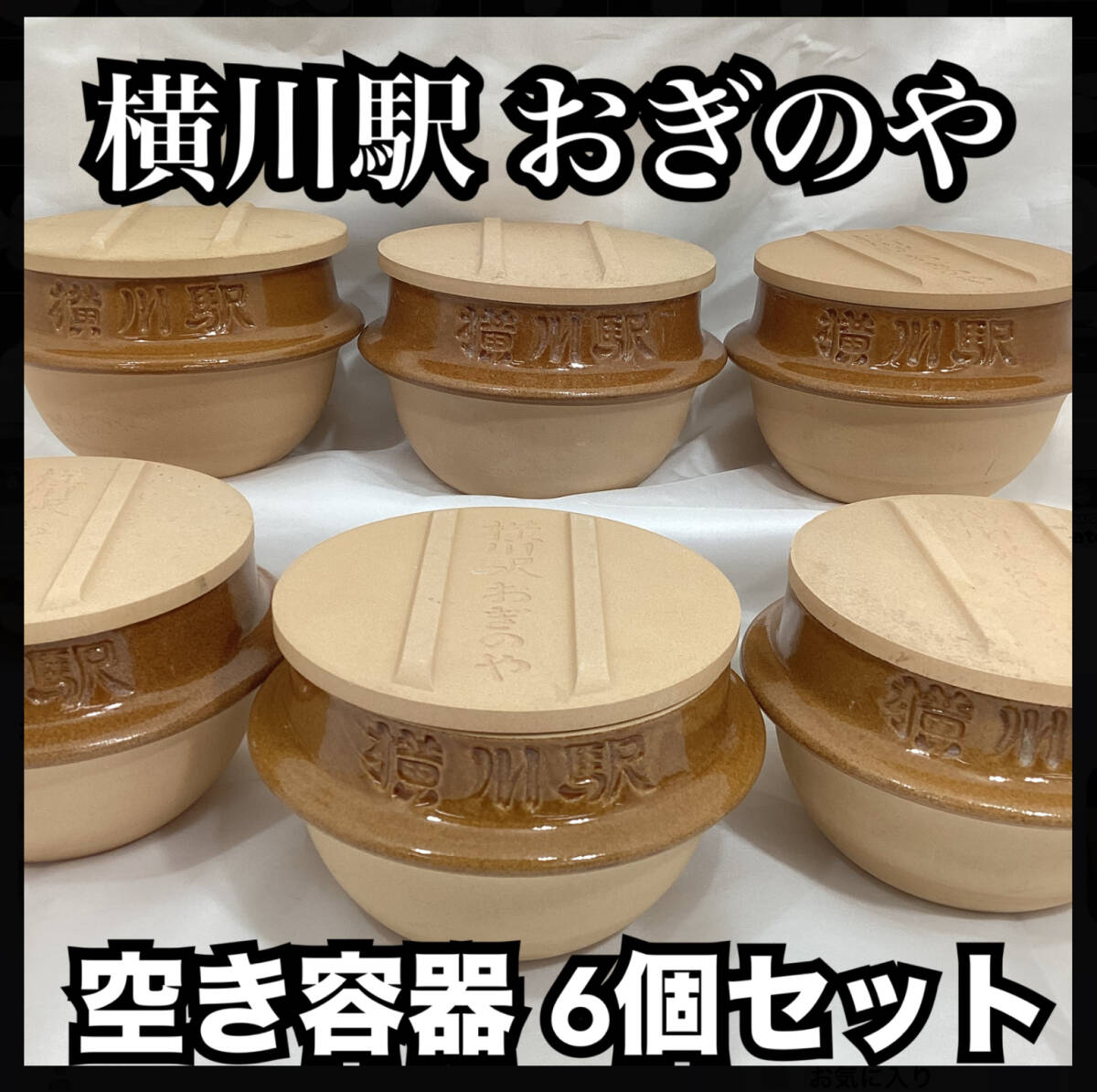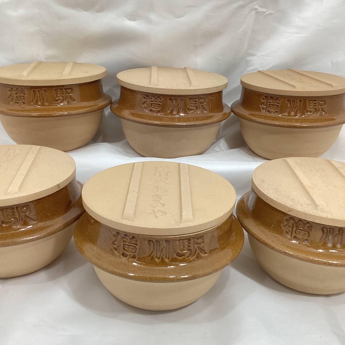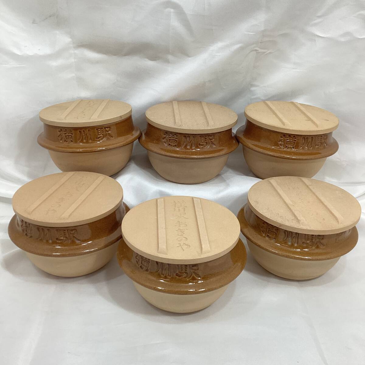 【保管品】横川駅 おぎのや 釜飯 空き容器 6個セット 駅弁 昭和レトロ 炊飯器 キャンプ アウトドア 信越本線 蓋付き 益子焼 【H1796】