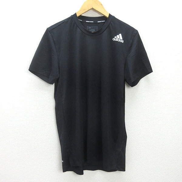 C■アディダス/ADIDAS ロゴデザイン 半袖tシャツ トレーニングウェア【O】黒/MENS/103【中古】■