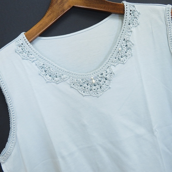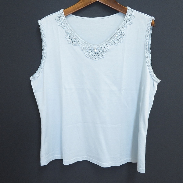 | 商品名 | #s レリアン Leilian ノースリーブ カットソー 13+ 大きいサイズ 水色 タンクトップ かぎ編み ビーズ 綿 コットン 13号 日本製 936392 k01 |