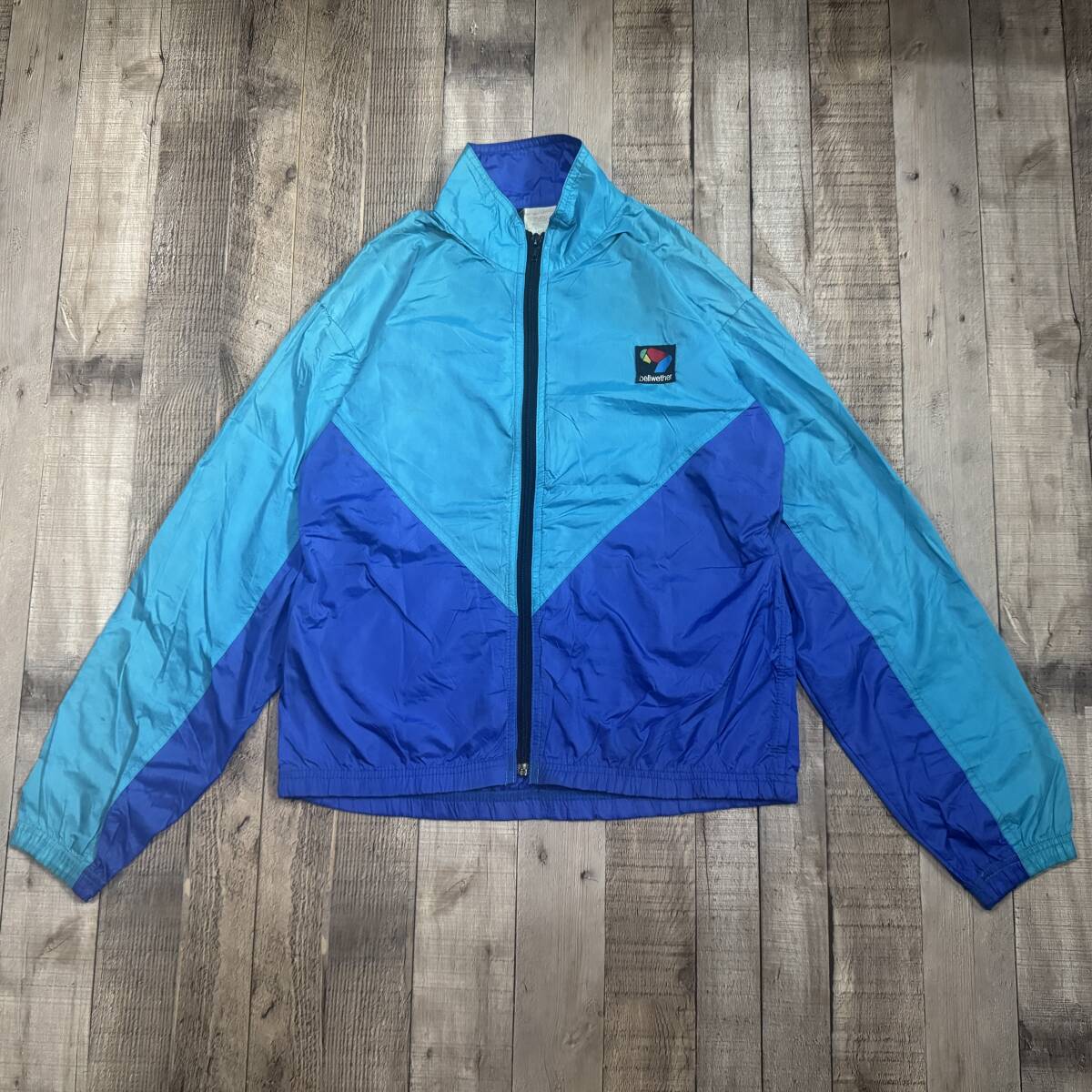 即決・クリックポスト発送・USA製・bellewther・ベルウェザーのナイロンジャケット・撥水加工・濃いブルー×明るいブルーグリーン・S