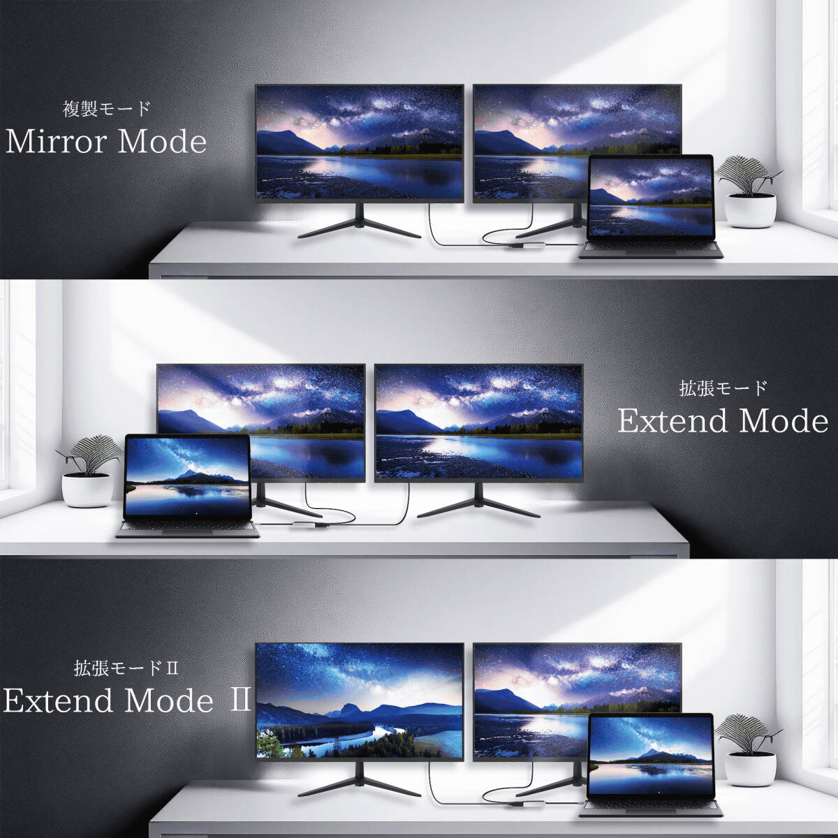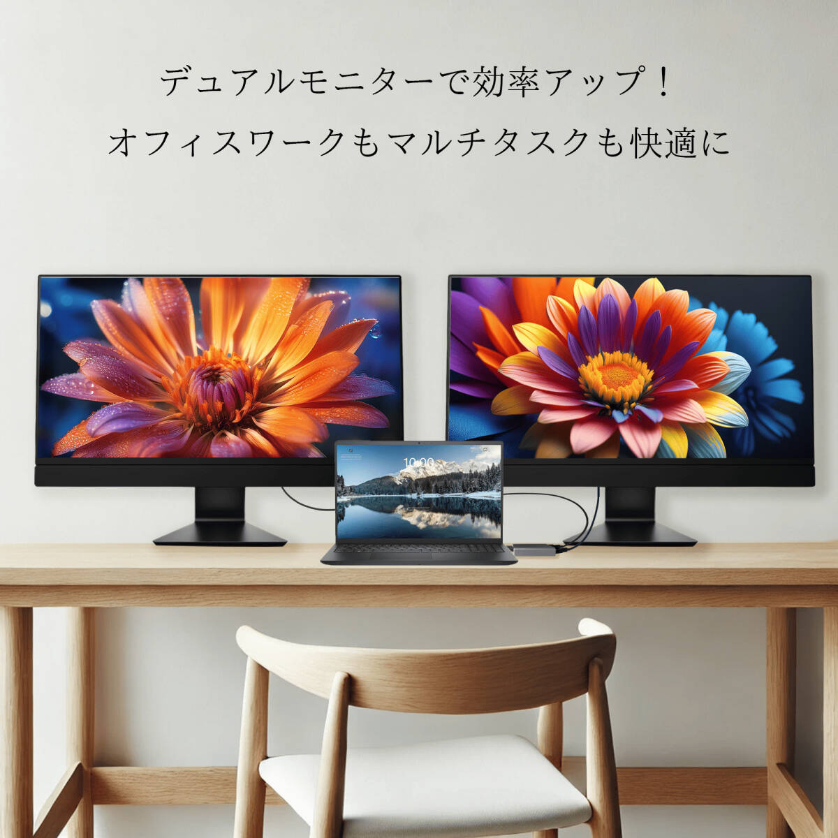 デスクトップ画面を2つのモニターに分割表示できるので、作業効率がアップ!ゲーム、動画編集、マルチタスク作業に最適です。