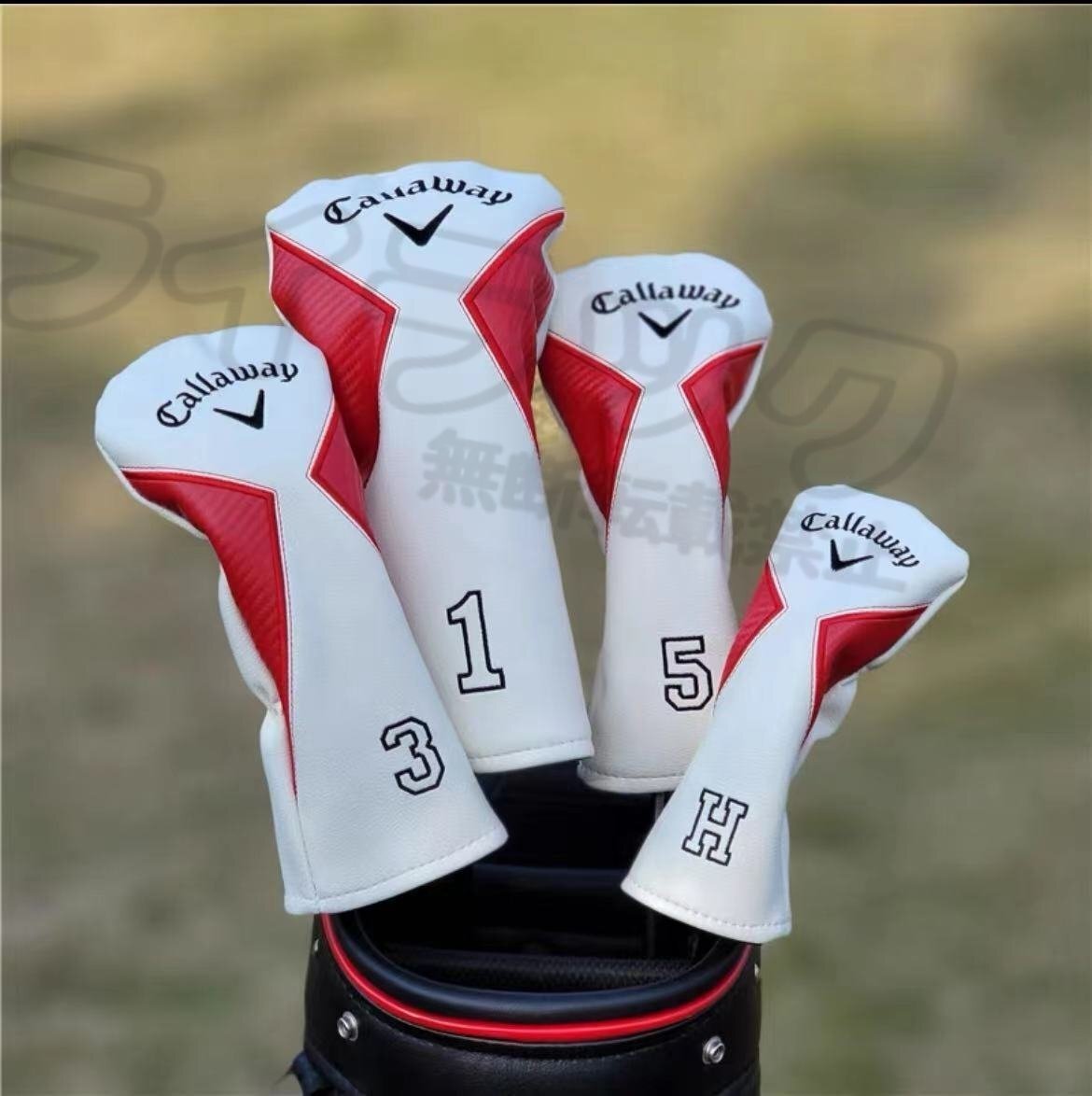 【セット】ゴルフクラブ ウッド ヘッドカバー アイボリー ゴルフアクセサリー レッド 4点セット