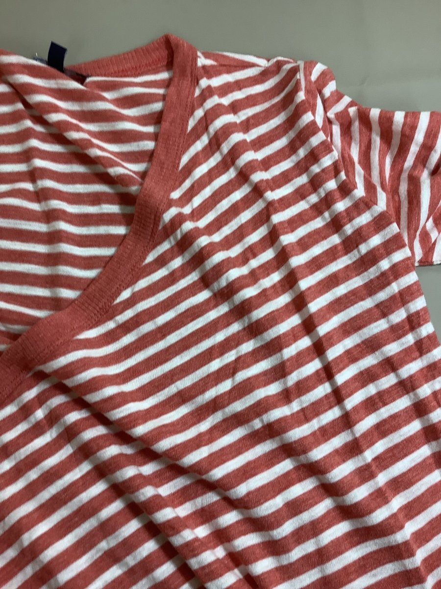 | 管理番号:10^138204 ギャップ (GAP) ルーズシルエットのカーディガン オフホワイトとピンクボーダー 表示サイズ:XS 実寸(参考)