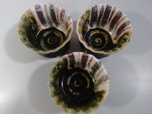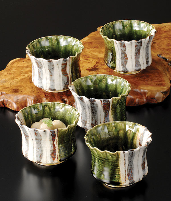 ばら売り【未使用品】魯山人 写しの器 織部錆十草 輪花淵向付揃
