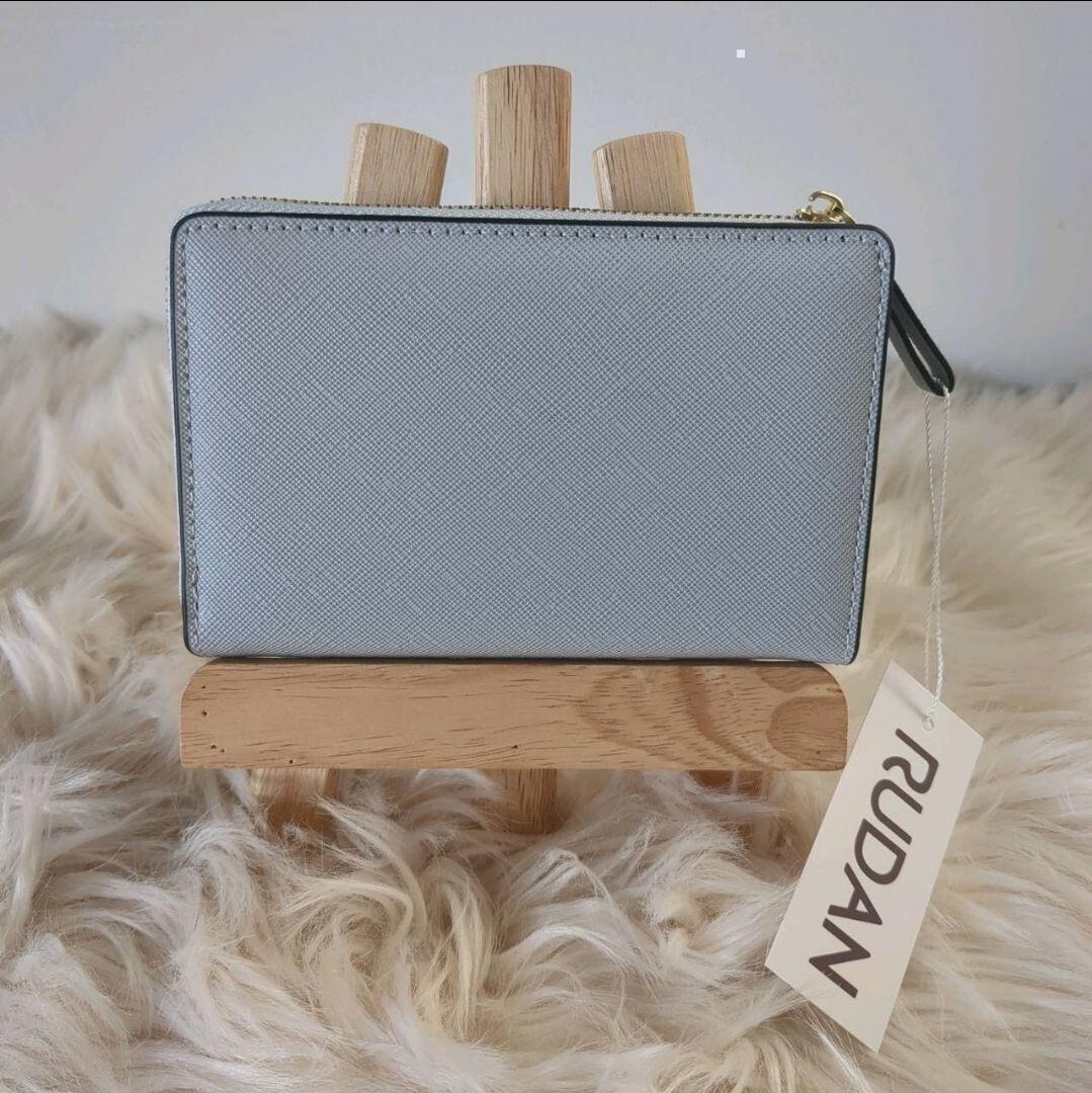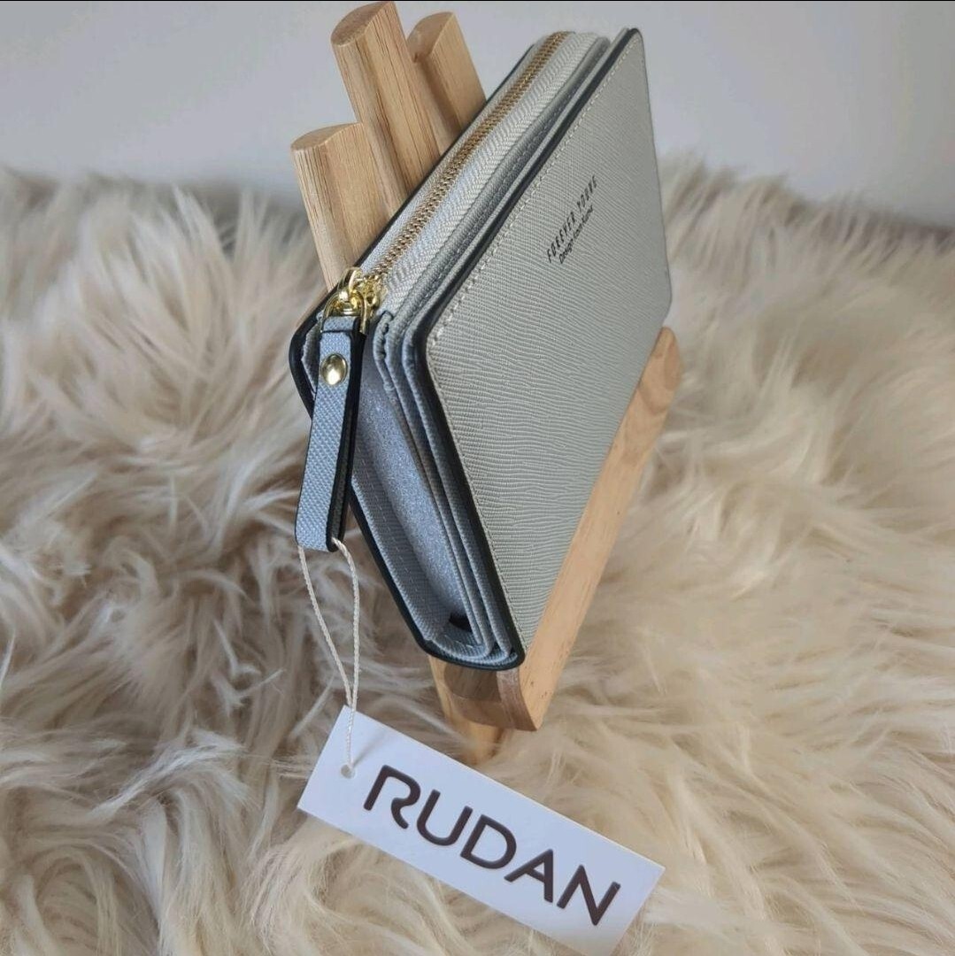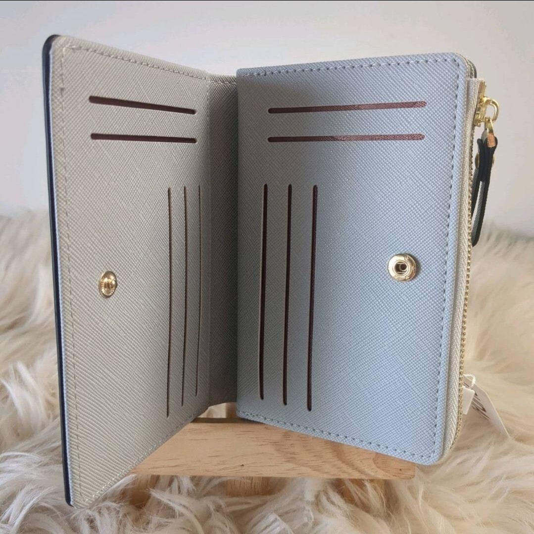 ライトグレーのコンパクトな財布です。