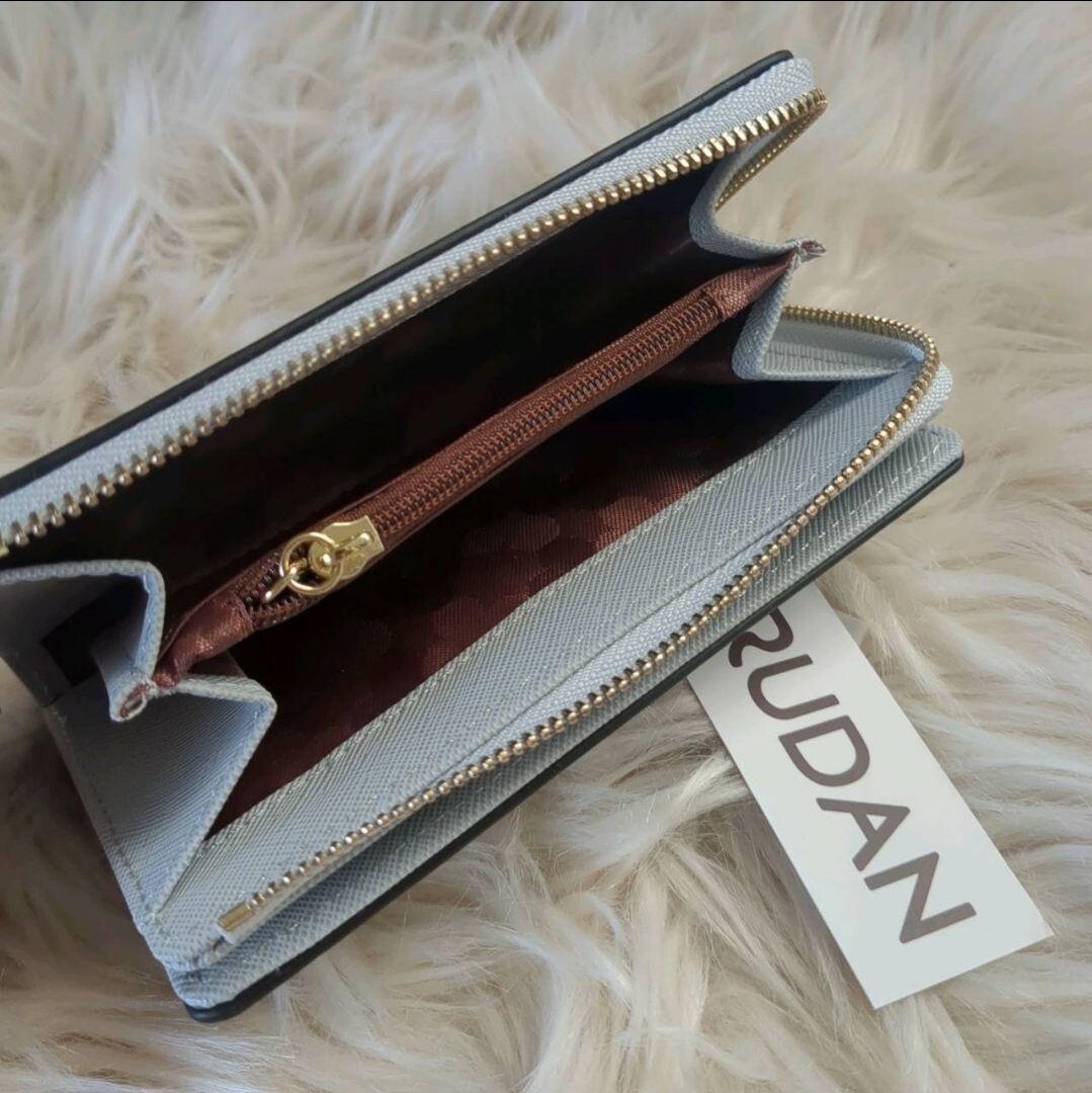 二つ折りを開くと、カードポケットが10枚、ラウンドファスナーで大きく開く小銭入れは、仕切り付きで仕分けが可能。