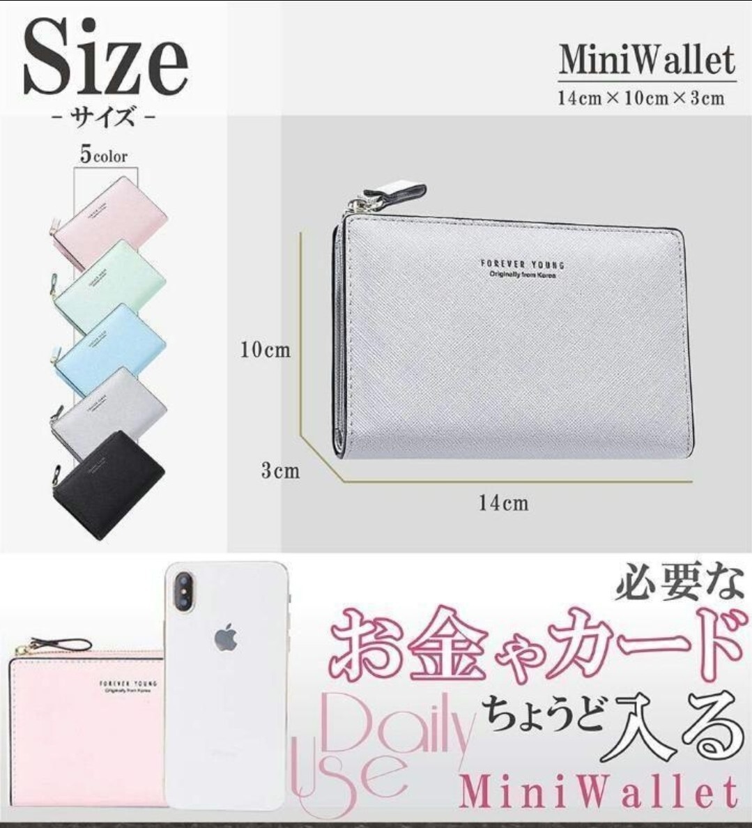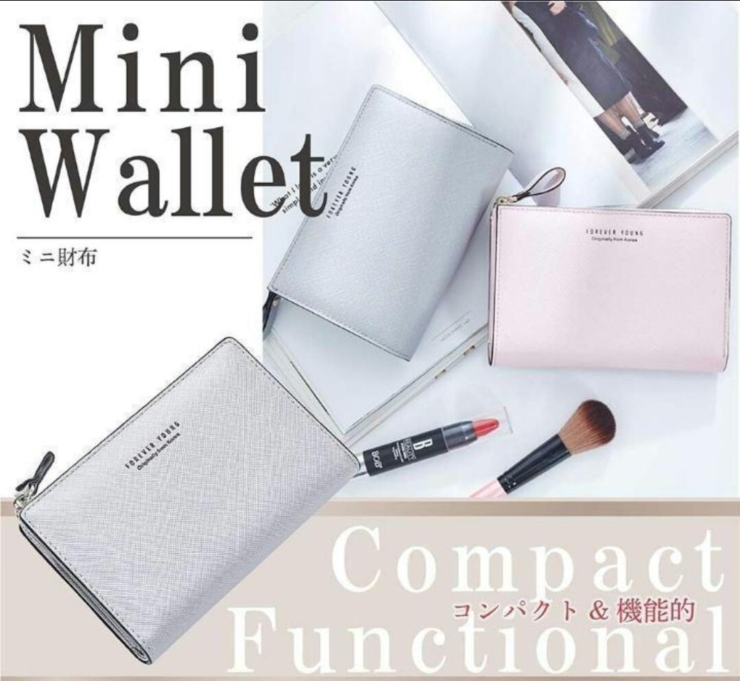 二つ折り財布 レディース お財布 ファスナー 小銭入れ カード入れ 10枚収納 ミニ財布 (ライトグレー)
