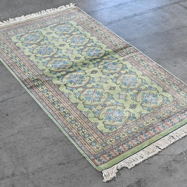 新品 未使用 パキスタン製 手織り ウールラグ 絨毯 花柄 フラワー ハンドノット 羊毛 カーペット インテリア リビング 応接室 寝室 P-72