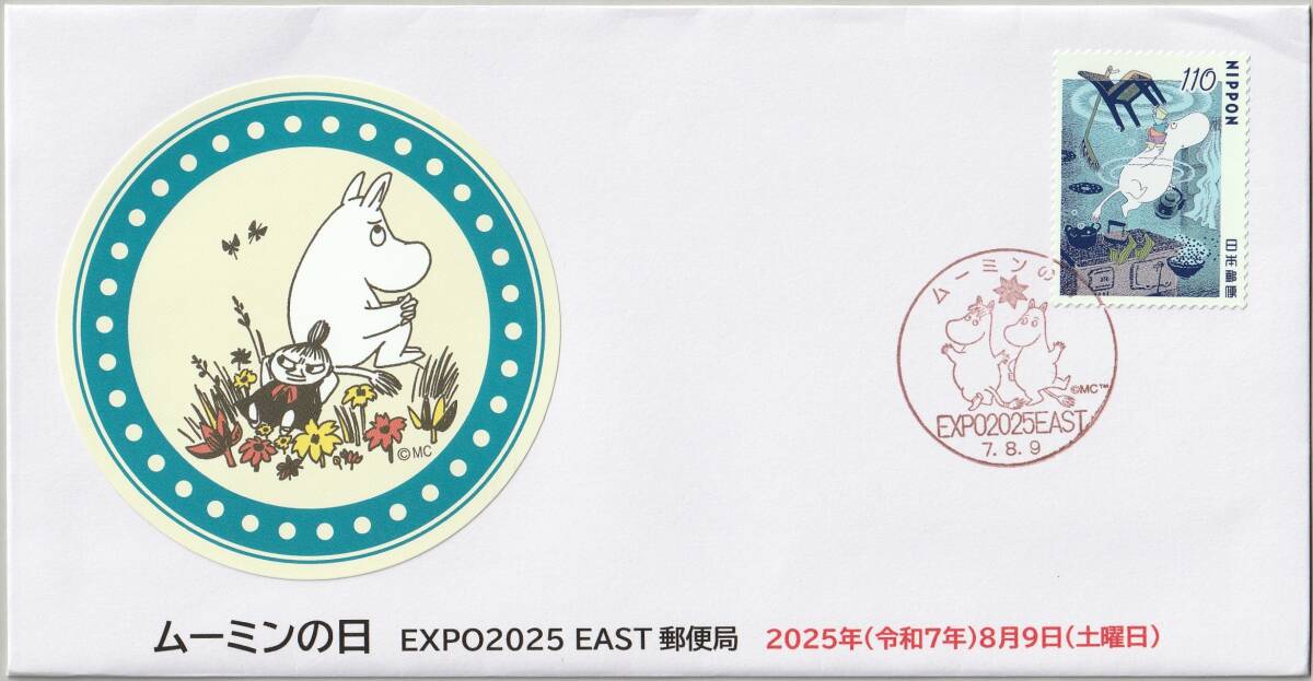 2025年 日本国際博覧会(2025大阪・関西万博)を記録するカバー(ステッカー貼)/ムーミンの日 小型印 EXPO2025 EAST郵便局/令和7年8月9日-2
