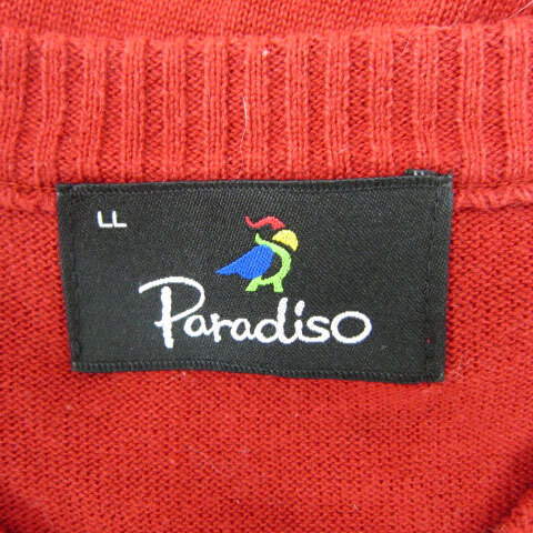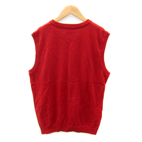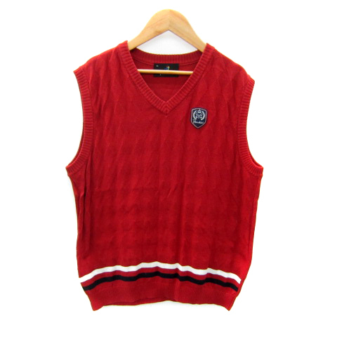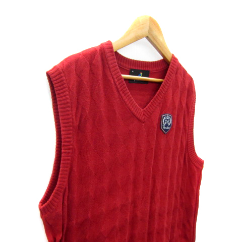 パラディーゾ PARADISO ゴルフウエア ニットベスト ミドル丈 Vネック アーガイルチェック柄 LL 赤 レッド /SY46 メンズ