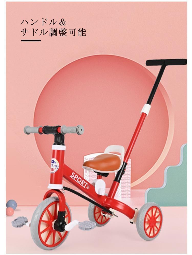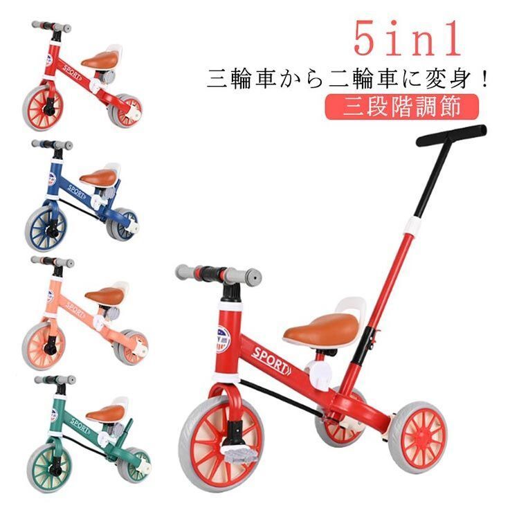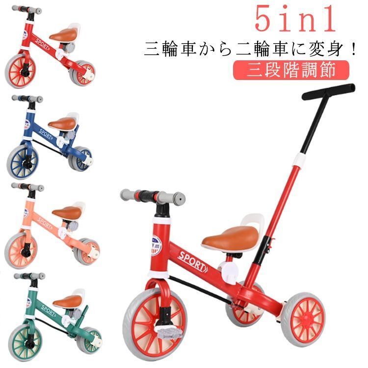 三輪車 子供 子供用三輪車 5in1 5way バランスバイク 足けりバイク ベビーカー 手押し棒 三輪車のりもの 押し棒付き 3輪 出かけ ペダル付き